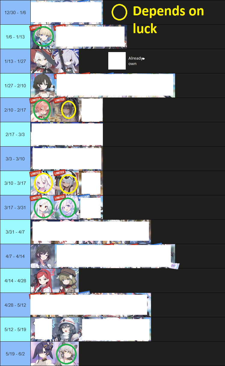 >>551565515events with wellfares shouldn't last a week, my swimsuit miyu is still 4* because i wasn't able to farm that much during the initial run and even less so during the second one