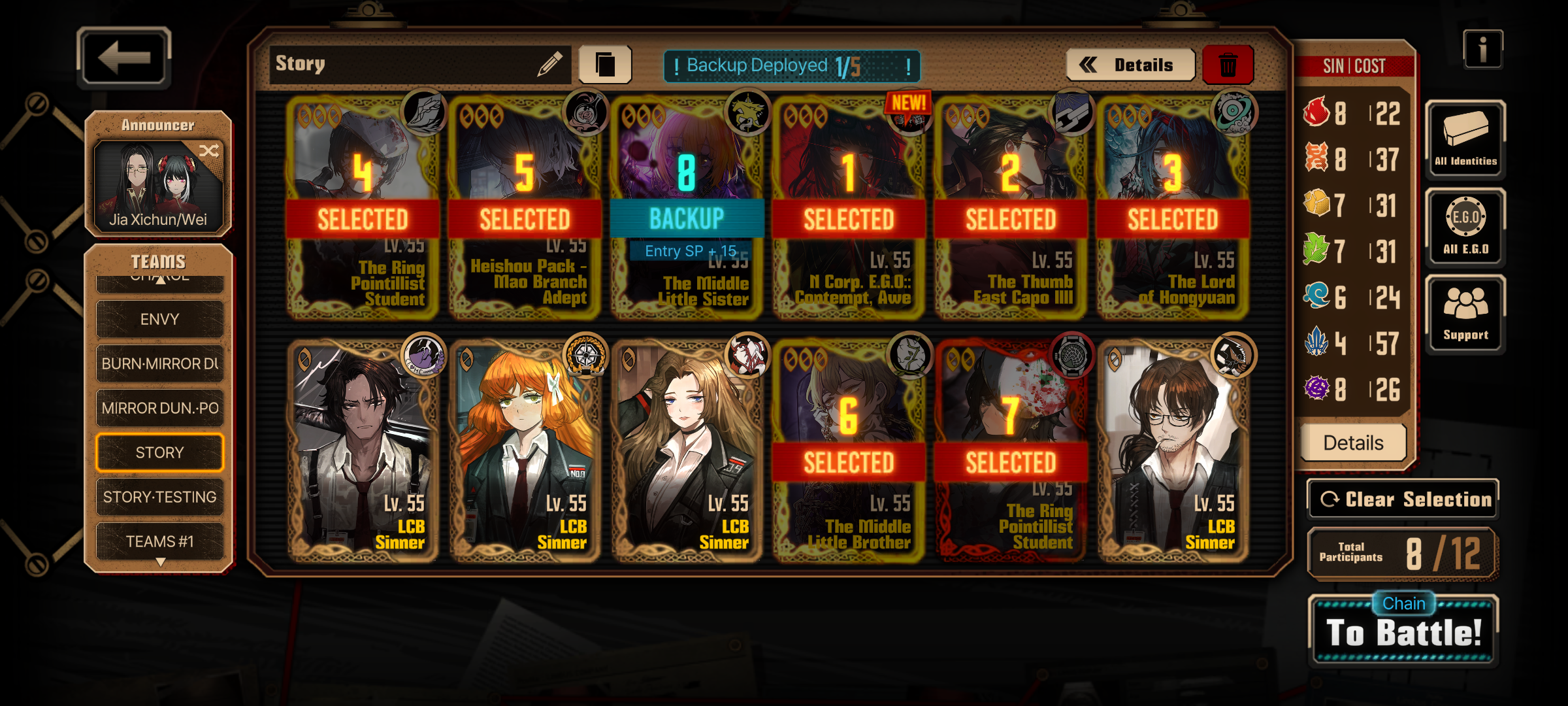 Previous thread: >>551541214Season 6 - 葬花吟 [Zàng Huā Yín]2025.05.15 — 2025.12.31Season 7 - Kumo no Ito2025.12.31 —Mirror Dungeon #6 - Mirror of Immortality2025.07.03 —Refraction Railway Line 5 - Merry Go Round2025.02.20 —>Current Events>Current Extractions2025.12.18 — 2025.12.31[000] R Corp. 4th Pack Reindeer Rodion2025.12.18 — 2025.12.31Target Extraction: [ Outis ] ID & E.G.O>FAQs! This game is directly tied to the setting of Project Moon's previous games, Lobotomy Corporation and Library of Ruina, and is set after both. Expect spoilers for those games in this thread.! The tutorial is important.>Download linksAppStore: https://apps.apple.com/app/limbus-company/id6444112366Google Play: https://play.google.com/store/apps/details?id=com.ProjectMoon.LimbusCompanySteam: https://store.steampowered.com/app/1973530/Limbus_Company/>Other linksOfficial twitter: https://twitter.com/limbuscompany_bOfficial youtube: https://www.youtube.com/@ProjectMoonOfficialOfficial site: https://limbuscompany.global>Required readinghttps://mega.nz/folder/xosDkZ5Z#Wt4JpUt5Bb2XG77pxuuXpw>For all your EGO and Sinner info needshttps://limbus.kusoge.xyz/https://gll-fun.com/en/>Useful resources and a general guidehttps://rentry.org/lcg_resourceshttps://rentry.org/lcbguidehttps://rentry.org/LCB_optimal_grind_guidehttps://lcb-days-since-last-id.carrd.co/https://lcb-days-since-last-ego.carrd.co/>Countdownhttps://lcbcountdown.carrd.co/