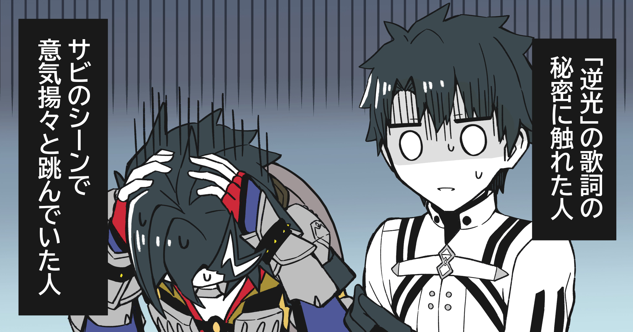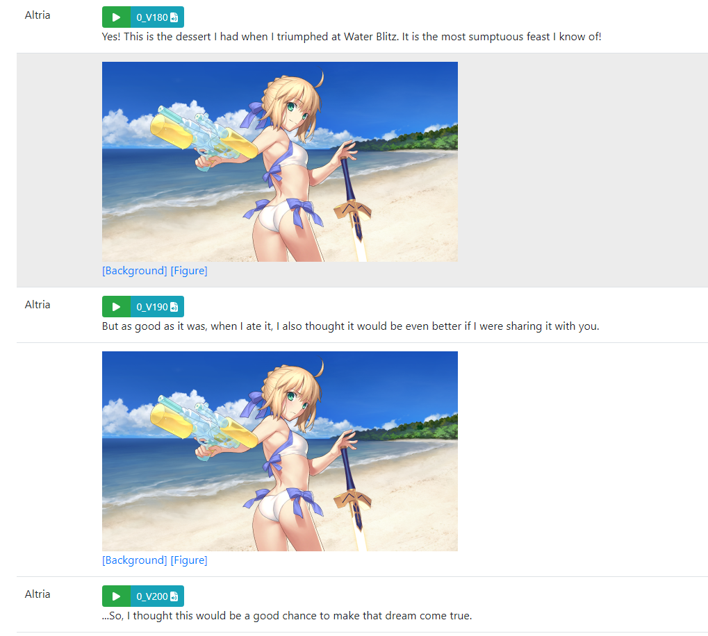 >>551572192>AAA: In Chaldea, it is customary for each Servant to give a present. So I decided to hand over the important role of handing out presents to Caster.>AAA: It’s such a shame, no matter how hard I tried, I could only make holy swords, so I gave up on making chocolate… No, it’s just self-pity. All I can do is get my favorite parfaits in advance and save it.>AAA: Oh, if you know a heroic spirit who loves swords like me and has cooking skills, please introduce them to me.>AAA: On the other hand, that girl showed moderate improvement in her skills. The workmanship of her chocolate is hard to believe from Berserker. It's the result of working as separate individuals, unlike the normal, correct way “me and her should be.”