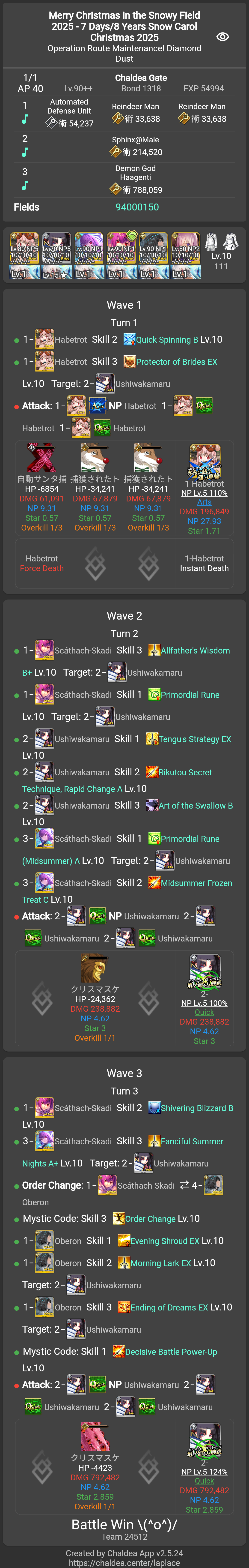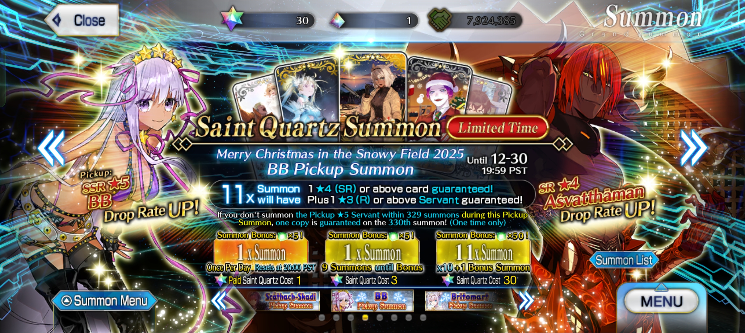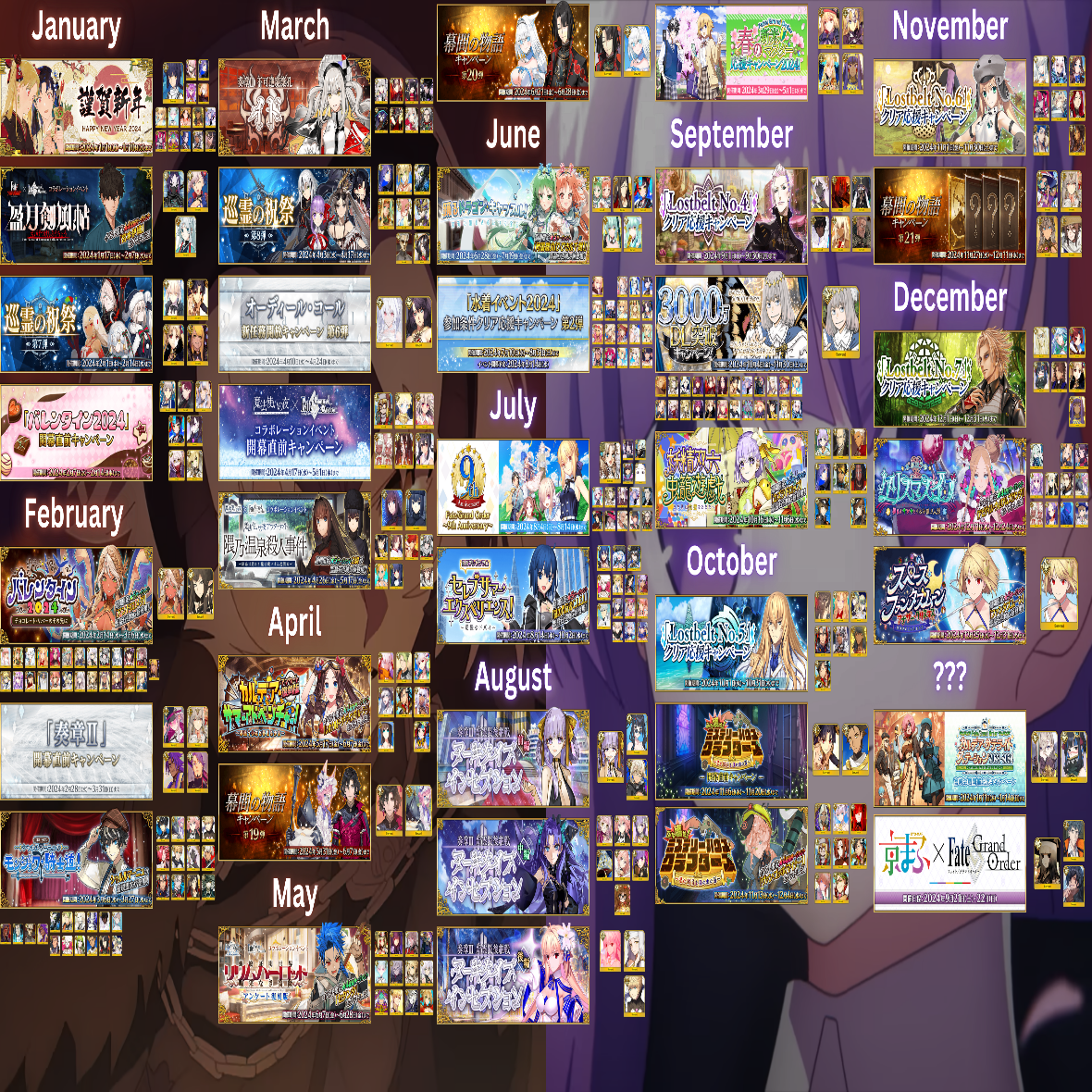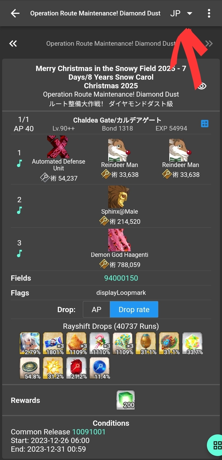 Previous: >>551512240>[Event] Merry Christmas in the Snowy Field 2025 - 7 Days/8 Years Snow Carolhttps://webview.fate-go.us/2025/1219_christmas2025/2025-12-19 00:00 - 12-31 19:59 PST>[Campaign] Advent Calendar 2025https://webview.fate-go.us/2025/1127_advent_calendar2025/2025-11-30 20:00 - 12-25 23:59 PST>[Campaign] Christmas 2025 Pre-Release Campaignhttps://webview.fate-go.us/iframe/2025/1208_christmas2025_cp/2025-12-10 20:00 - 12-31 19:59 PST>[Campaign] New Year's 2026 Countdown Campaignhttps://webview.fate-go.us/iframe/2025/1223_ny2026_cdcp/2025-12-25 20:00 - 12-31 19:59 PST>[News]https://webview.fate-go.us/>[Servant Info]Servant Material Lookup: https://fgosim.github.io/Material/Servant Planner: https://github.com/chaldea-center/chaldeaCoin Calculator: https://fgo-servant-coins.glitch.me/index.htmlRank Up + Interlude Timeline: https://kazemai.github.io/fgo-vz/relate_quest.htmlRate Up Tracker: https://tohnocoding.github.io/fgobanners/>[Mats/Summoning Info]Rateups in FGO JP: https://files.catbox.moe/lf1qmz.pngQuartz for next Summer: https://docs.google.com/spreadsheets/d/1iRH60QpLNvHy9MMDKLJGNSg4s7FsDfdXtJtOUVDj5po/edit?gid=162156045#gid=162156045FGO Event Compendium: https://docs.google.com/spreadsheets/d/1qvxLU407QwiFaCvItqR16SqqAVlLD5u5nBzY_bCFYvs/edit#gid=2111060397Drop Rates: https://docs.google.com/spreadsheets/d/1_SlTjrVRTgHgfS7sRqx4CeJMqlz687HdSlYqiW-JvQAFGO Raw Database: https://apps.atlasacademy.io/>[FAQ]https://rentry.org/alter-faq