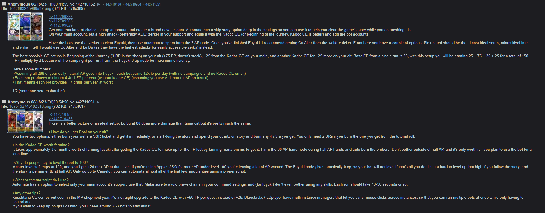>>551611182>>551611421Uhh just ignore that part because it doesn’t change or do anything for my interactions on here.>>551611505Okay this does sound good but also a bit of a pain to setup..>>551611604>>551611641I have 1.2m currently from the lotto I was hoping that would be enough. I already do have a Saber Lily NP5, she is cute as hell. But I don’t have the other one you’re referring to. Are they good? The reason I wanted Habetrot was because she’s cute, I used her to farm one of the 90+ nodes from 1-2 of the people on here.