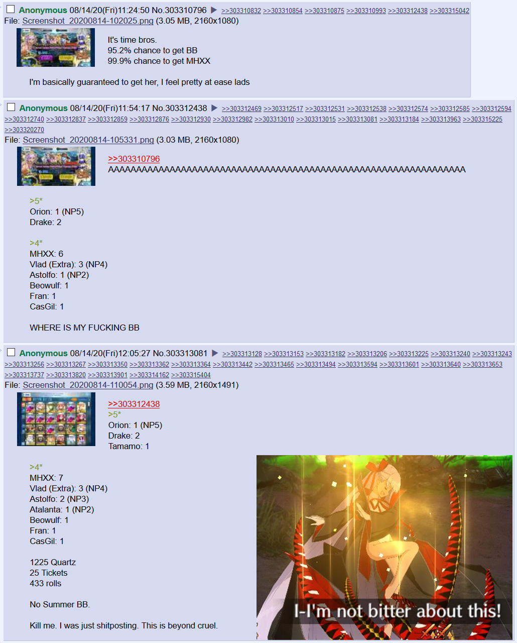 >>551614687Could be worse. You could have not saved for pity and pulled prematurely and end up with shit. I gotta stop doing that shit to myself…