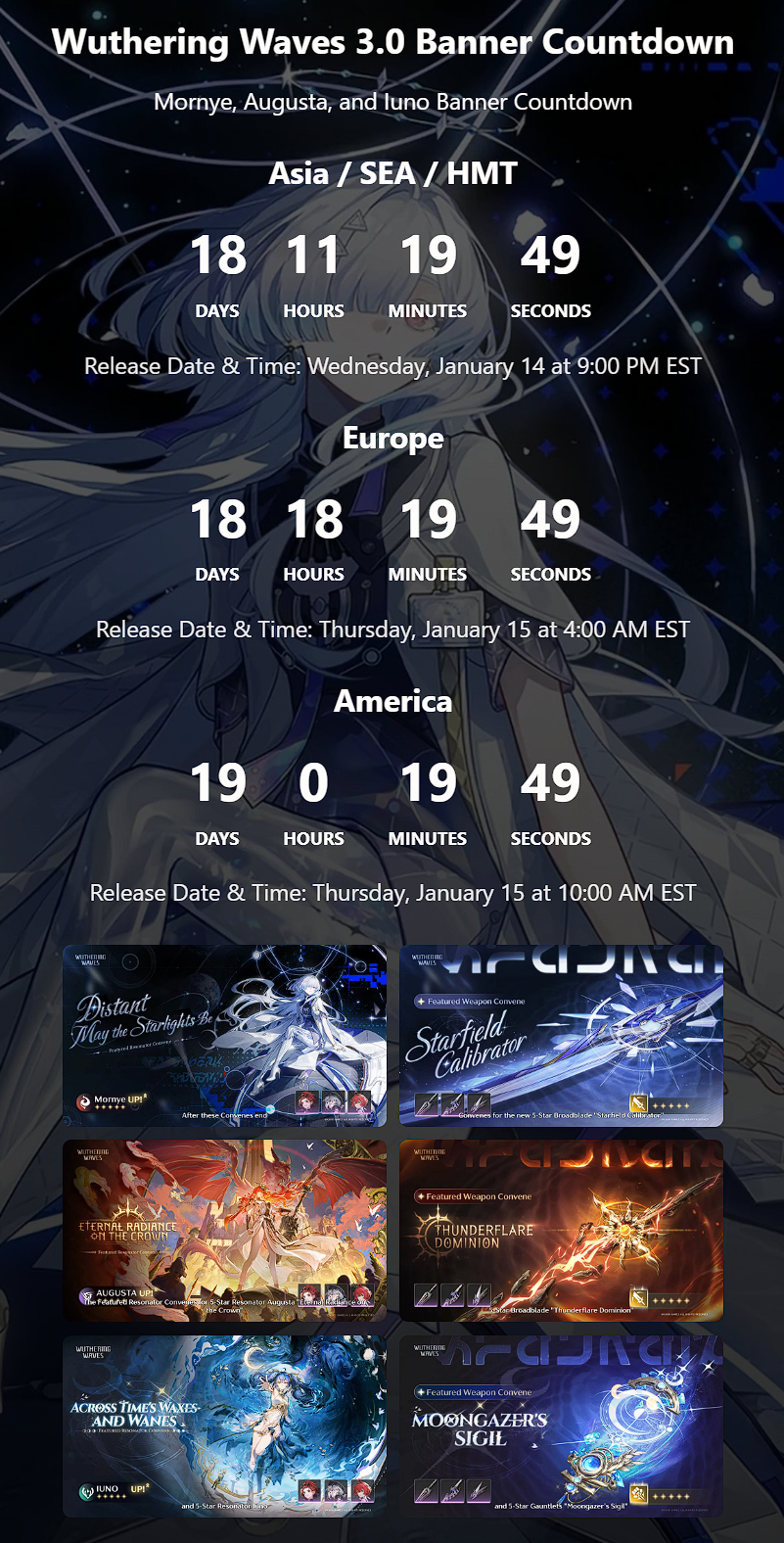Download (Android/iOS/EGS/Windows)https://wutheringwaves.kurogames.com/en/#mainhttps://store.steampowered.com/app/3513350/Wuthering_Waves/>Wuthering Waves Version 3.0 Official Trailer | We Who See the Starshttps://youtu.be/1Lr41l-eJUw [Open] [Embed]>Wuthering Waves TGA 2025 Promotion Video | Back-to-School Dayhttps://youtu.be/ilF-O15Jo6Q [Open] [Embed]>Wuthering Waves Version 3.0 Cinematic Short | Transfer Studenthttps://youtu.be/2_FwLf6y1-g [Open] [Embed]>Wuthering Waves - Version 3.0 Gameplay Showcasehttps://youtu.be/7sRAVxs5Z_8 [Open] [Embed]>Wuthering Waves | Resonator Showcase | Lynae — MY OWN CHOICEhttps://youtu.be/PtwtqTqVB3o [Open] [Embed]>Wuthering Waves Resonator Combat Showcase | Lynaehttps://youtu.be/2GKG7N262zY [Open] [Embed]>Wuthering Waves | Resonator Showcase | Chisa — CUT THIS LOOPhttps://youtu.be/7MsJ7mk8x5g [Open] [Embed]>Wuthering Waves Resonator Combat Showcase | Chisahttps://youtu.be/99Gb873nmQ4 [Open] [Embed]>Wuthering Waves Version 2.8 Official Trailer | To the City Set in Amberhttps://youtu.be/MtbA32Wdviw [Open] [Embed]>Map:https://wuthering-waves-map.appsample.com/>Convene Trackerhttps://wuwatracker.com>EventsWHEN IN DOUBT, CHECK: https://wuwatracker.com/timeline[Stranger Things in Honami - Combat Event] [Nov 20 - Dec 24][Search for It! Bits of Lahai-Roi] [Dec 11 - Dec 23]>Timeline, Rewards and Media Contentshttps://rentry.org/wuwavgv2>Emoteshttps://drive.google.com/drive/folders/1GY6YgPhhOsxN2oW0AbIywdO9Z1_OFe6Khttps://files.catbox.moe/49buge.zip>/wuwa/ Friends Listhttps://docs.google.com/spreadsheets/d/1MzulbsusjOWpaFg6o6kk3TvCWfFYi6EF7NyJXqIazGo>NEWS/EVENTS (and patch notes)https://wutheringwaves.kurogames.com/en/main/news/detail/3754https://wutheringwaves.kurogames.com/en/main/news/detail/3766Previous: >>551590789