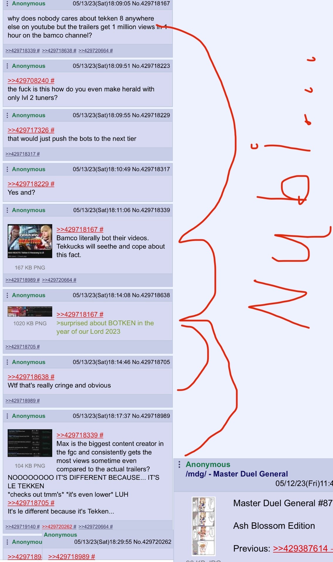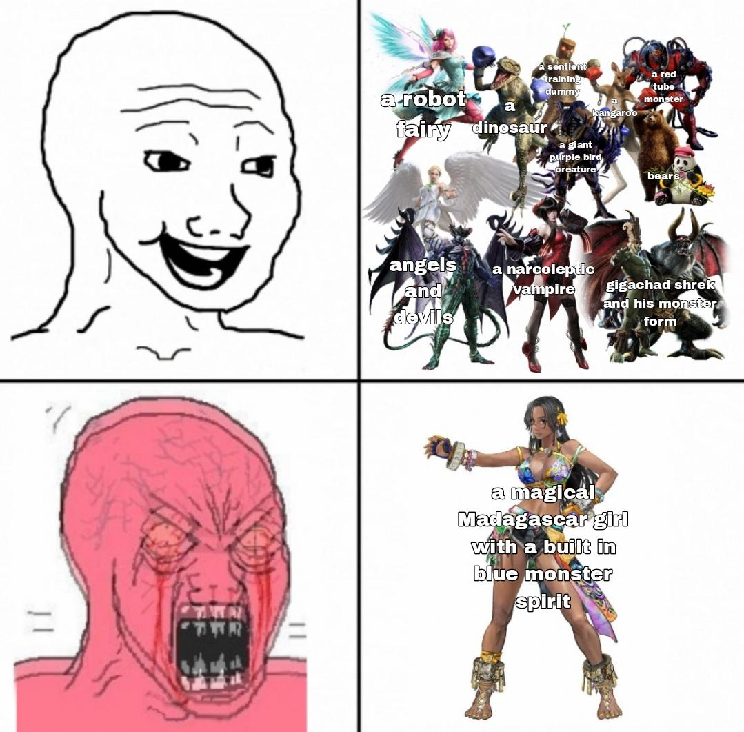 >>551668135the weird thing about nubi is that he doesn't even care about street fighter or tekkenhe's just obsessed with one person who is apparently a tekken fan and is so mentally it that he assumes anyone criticizing sf6 must be that person and immediately starts spamming his anti-tekken pictures to try to spite them