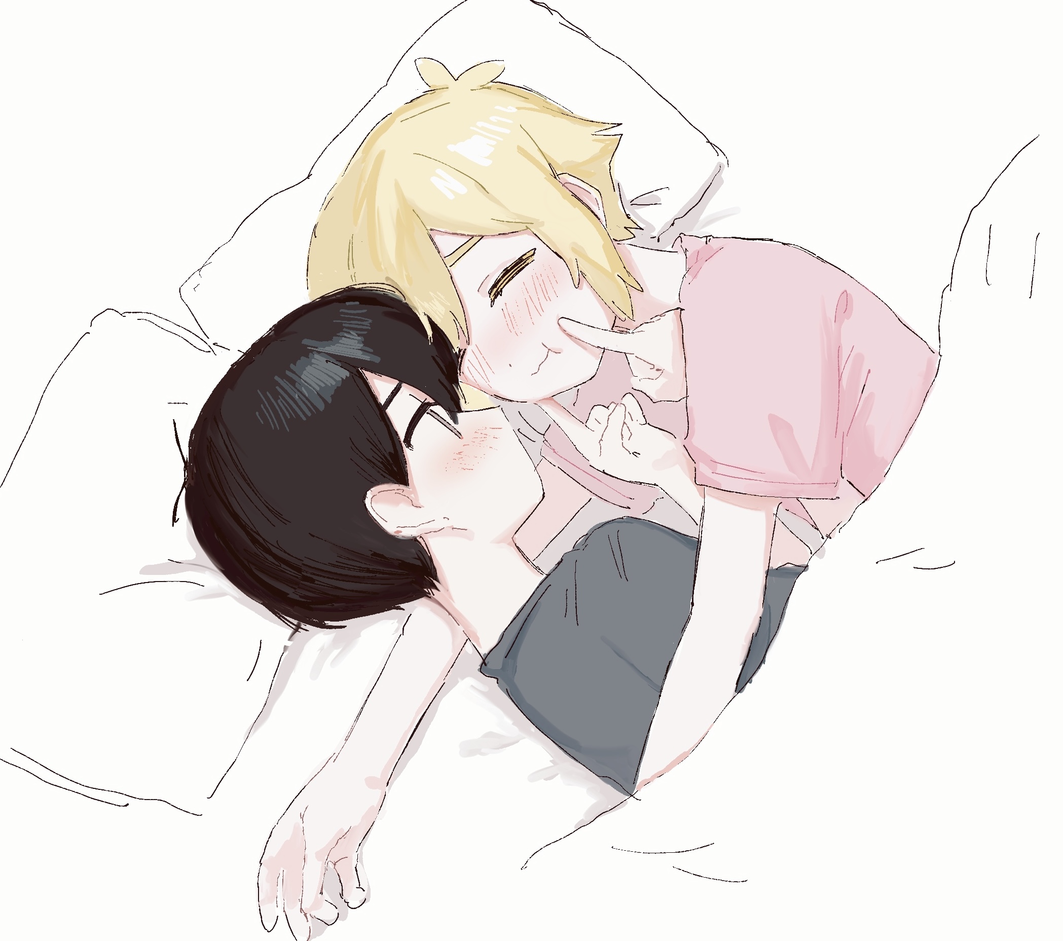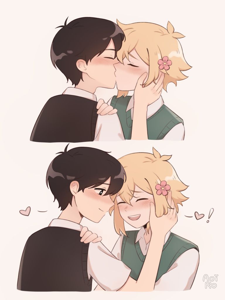 No, the game has no confirmed attraction between any of the main characters outside of Sunny's crush on Aubrey. Not even Hero and Mari dating is truly canon in the game.
