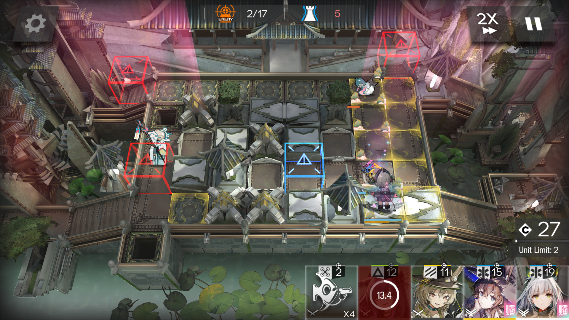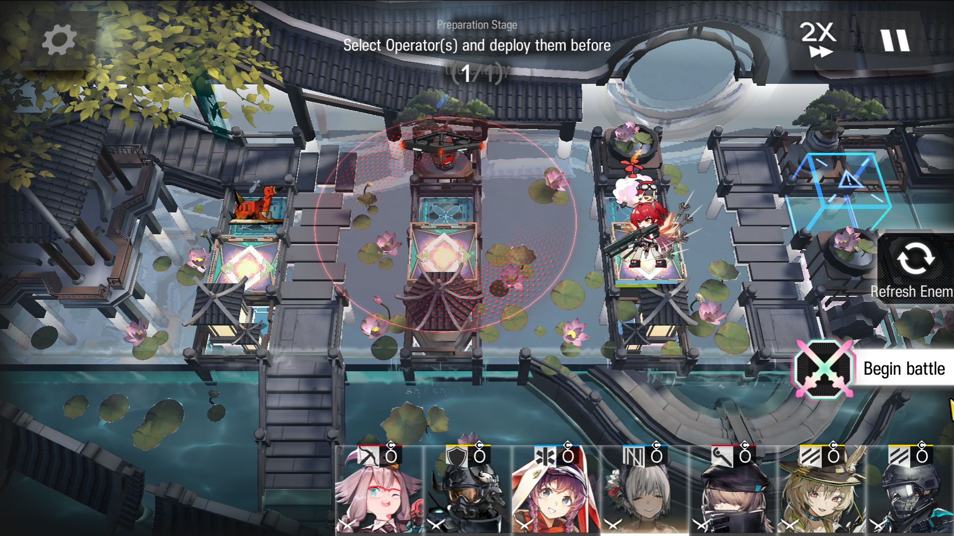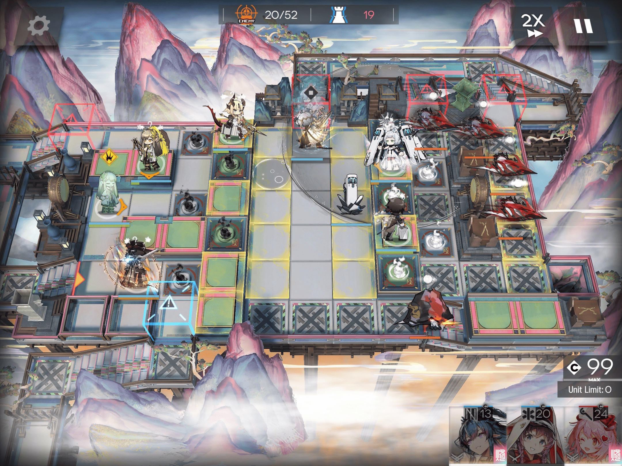 >>551711970Open with Wis on the single safe ranged tile in the top right, using s2 because it's multitarget and her s3 will get stuck targeting the talisman placed on her revenant's shadow. the s2 will also open up the other ranged tile to the right of Wis by breaking the piece, where I like to put Raidian. Spawncamp the red box on the two safe ground tiles directly above and below it. Leizialt is good on that position, since her S2 can lanehold both sides of the red box while taking out one row of the Talisman enemies. Ground operators are preferred due to the severe lack of ranged tiles, but you can only safely use them after you clean up the talisman enemies. Any tile surrounded by checkers will permastun your operator, don't place them there. Any tile adjacent to checkers but not surrounded will deal DOT to your operators, place them there only if you have a way to heal through it or are fine with them dying. Again, ground healers preferred because there's only three fucking ranged tiles.
