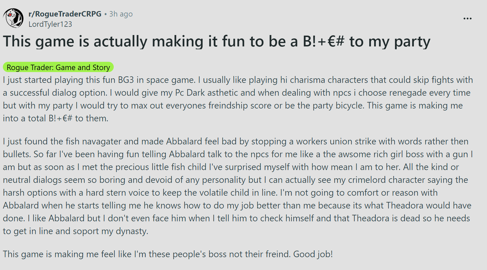 Larian doesn't get enough hate for le quirky talking animals xD