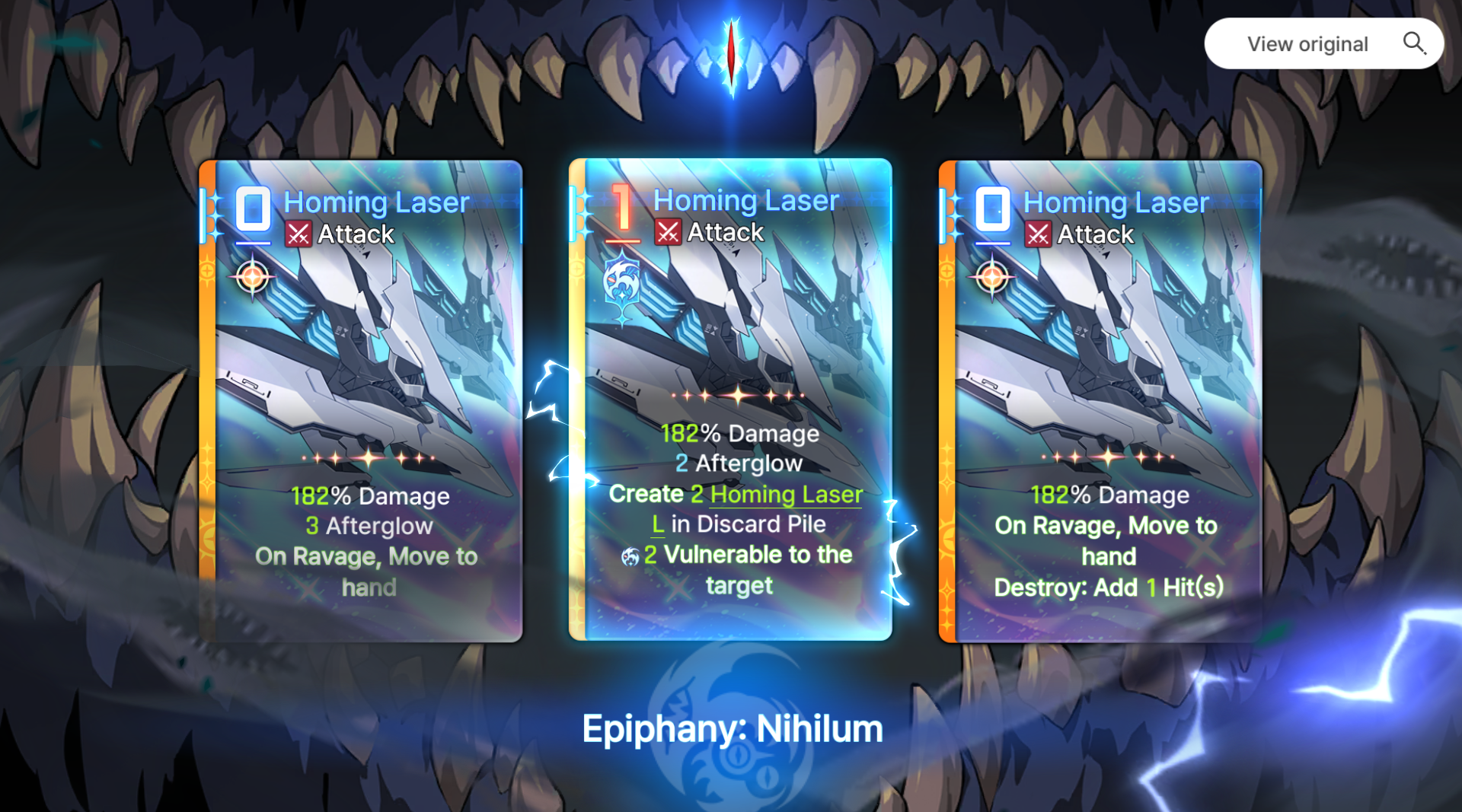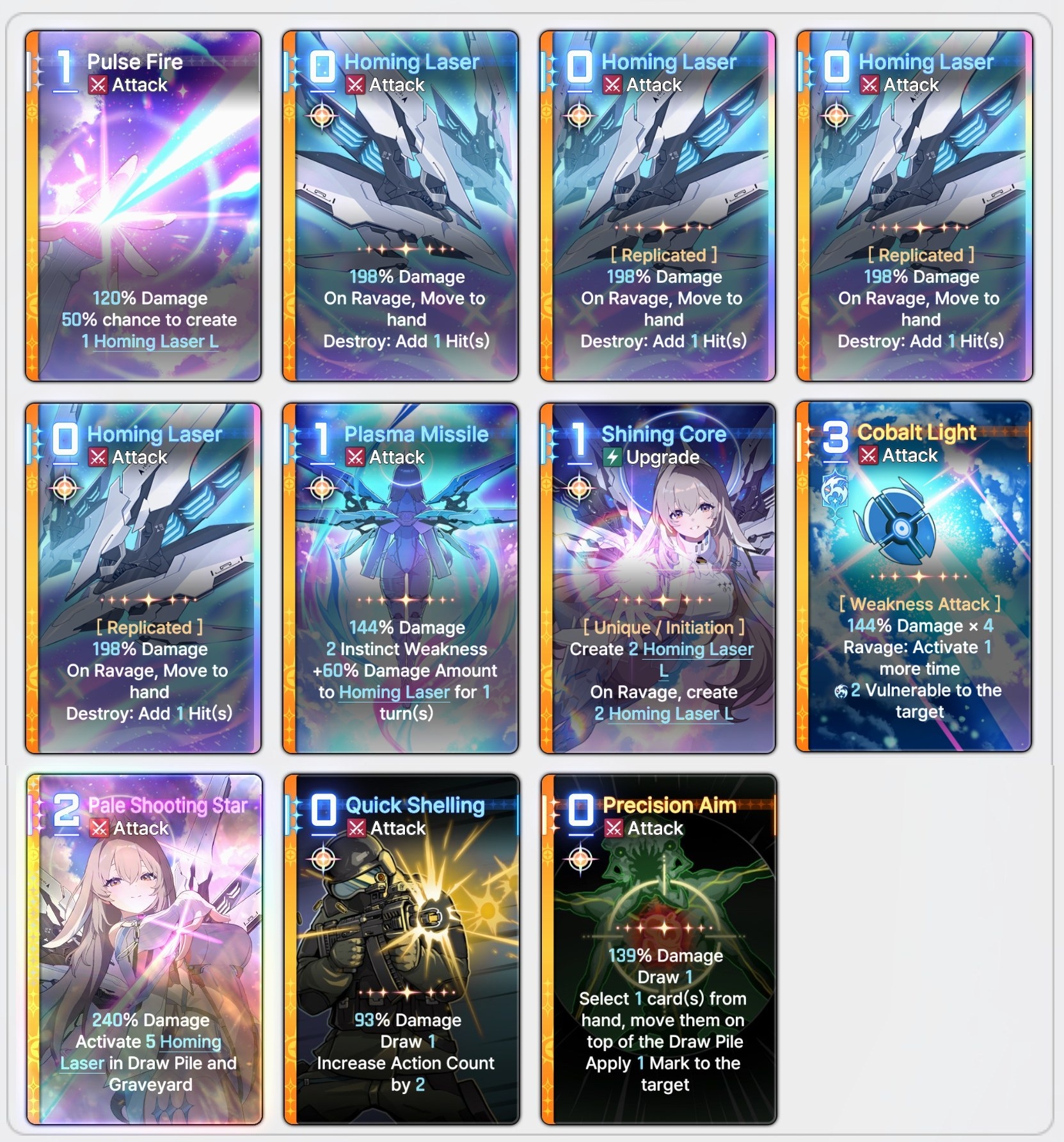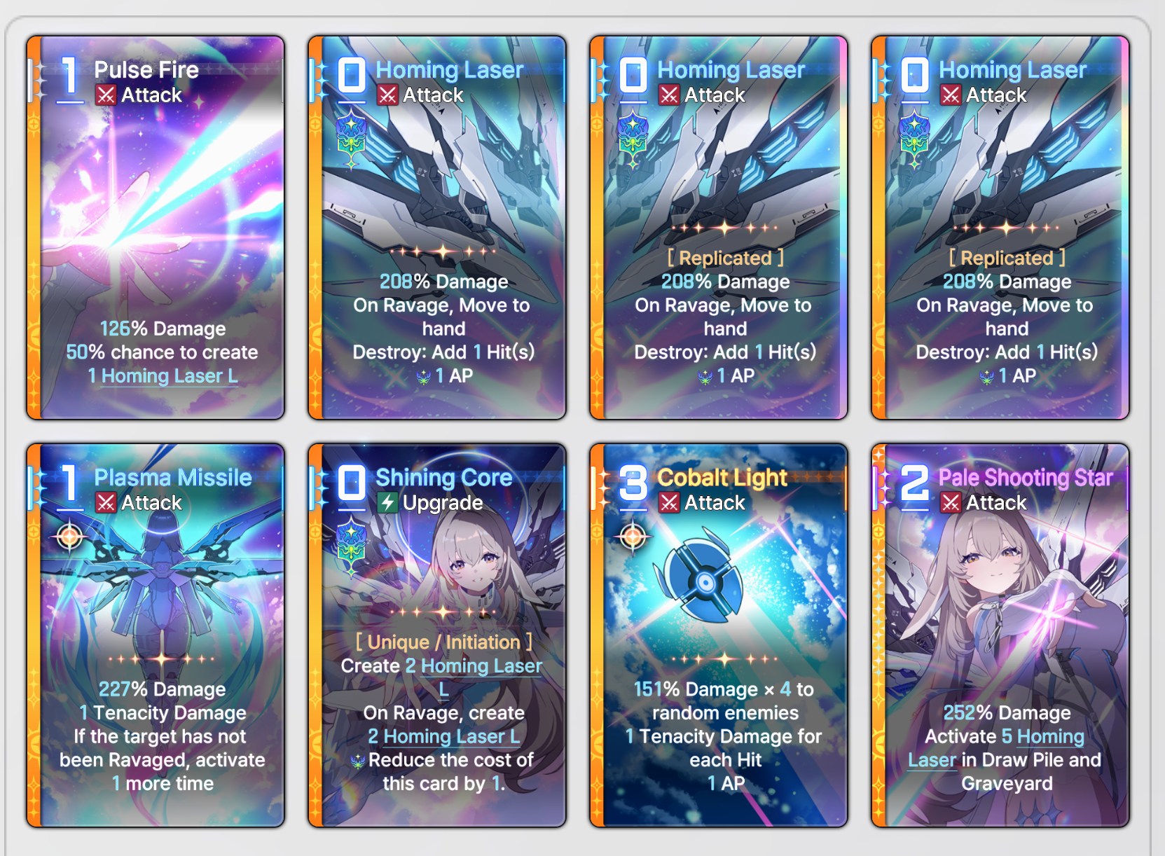 >>551792564>>551792845The leaderboard destroy decks compensate by having one or two copies with 2-3 afterglow. Anon's deck is totally reliant on the 1 afterglow from each homing laser L (brick)