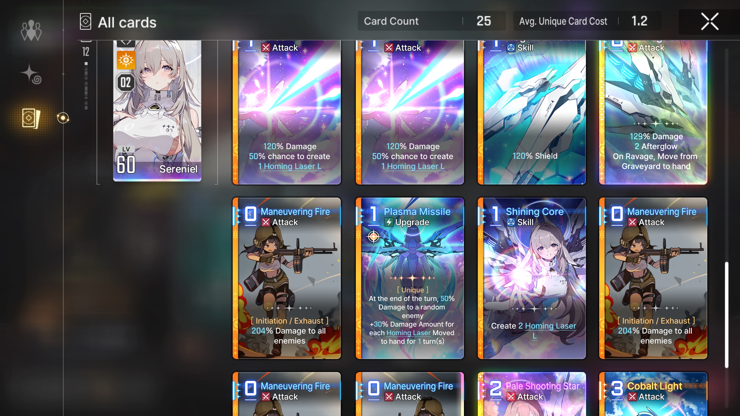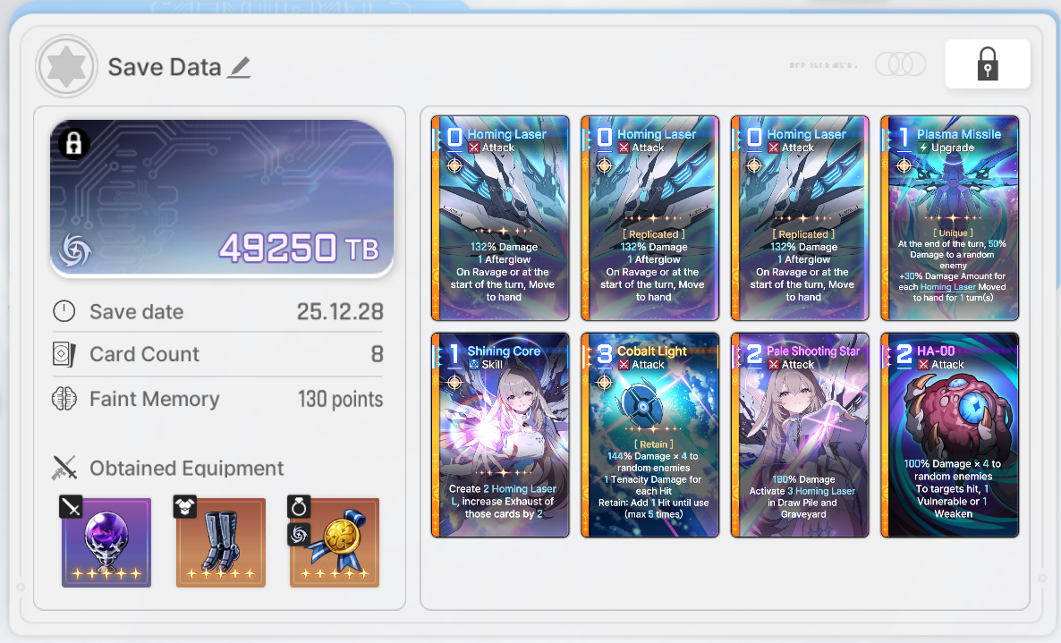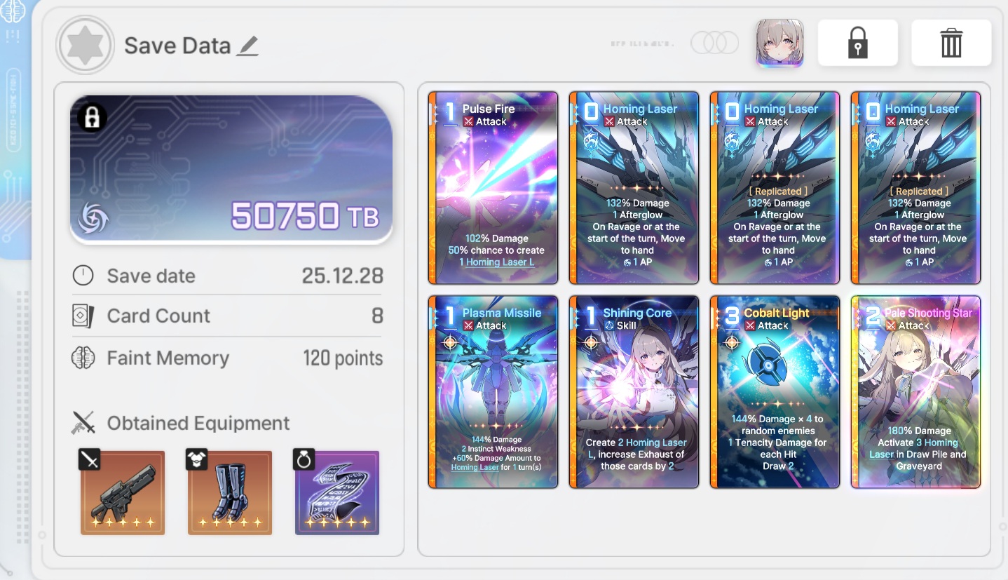 >>551792564>>551792845The leaderboard destroy decks compensate by having one or two copies with 2-3 afterglow. Anon's deck is totally reliant on the 1 afterglow from each homing laser L (brick)