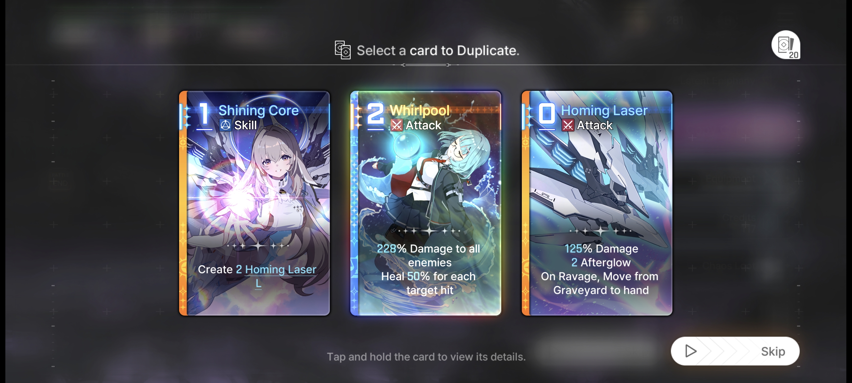 Starting to get real sick of the gameplay loop. It seems to me there's only two options:>farm Chaos until you get lucky with the copy events and equipment (dozens of hours per character if you want to get a better than average deck)>use the deck to place slightly higher in the leaderboard than you would had you not invested all that timeor>farm Chaos until you get an acceptable deck>use the deck to participate in the event at a basic levelBut since the roguelike plays the same way every time even the latter option has started to feel like a chore. I know they are adding more gameplay options but I don't have a lot of faith and that's a long way off. Think I'll give this game a break and check in at Easter.