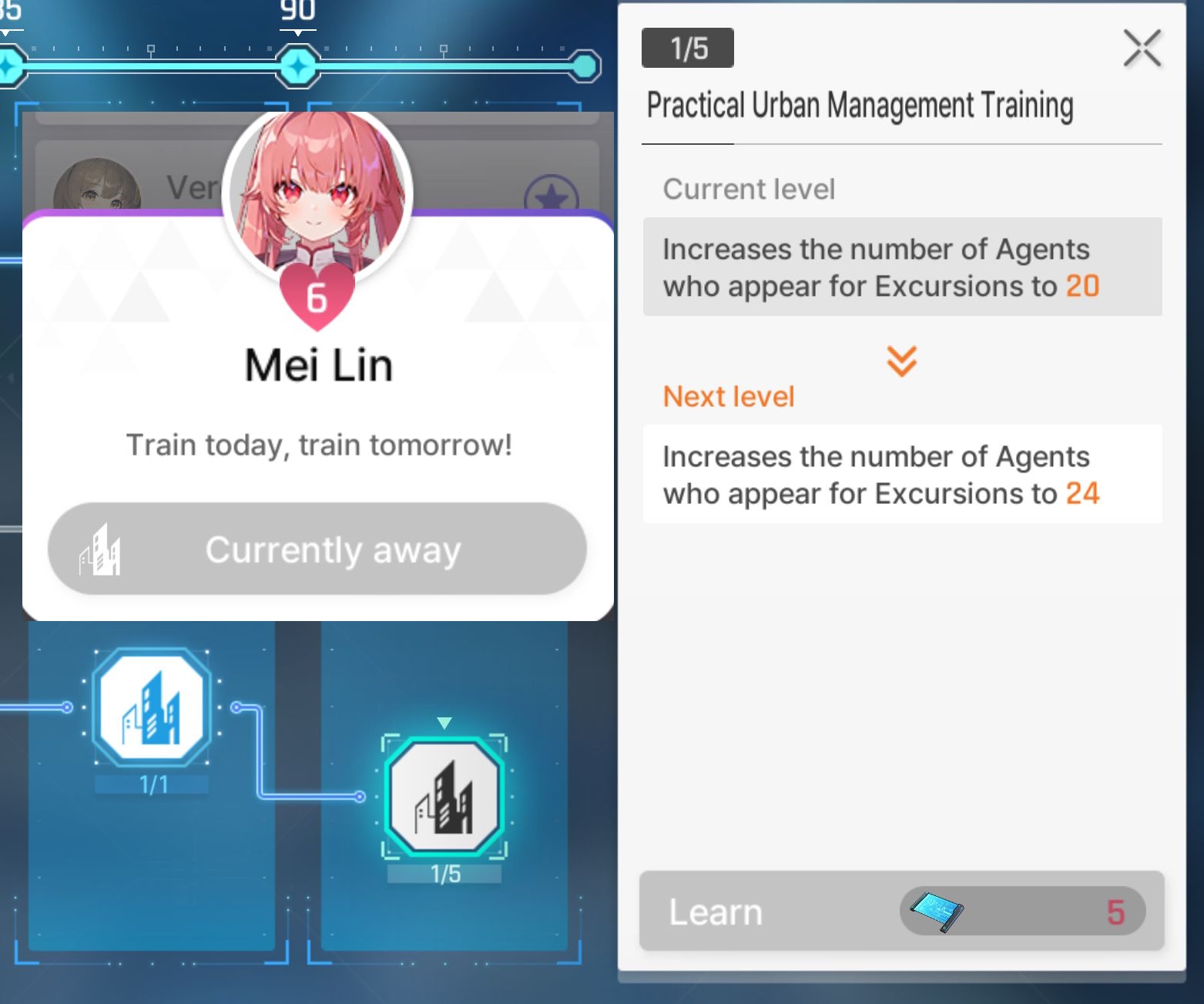 >[Ark City] – Excursion Improvements>When a combatant is marked as a Favorite in Unigram, they will now appear in available outing areas after 18:00 (UTC+0) each day.>all areas unlocked>set mei lin as favorite days ago>no mei lin two days in a rownice game