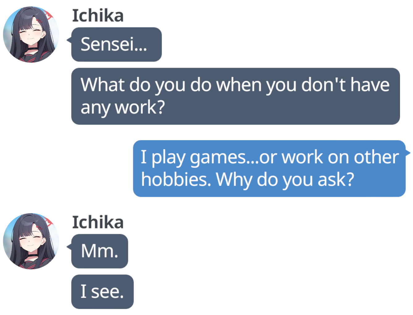 I've been waiting for Umika to spook me for a long while now. If she doesn't come home soon I'll have to selector her.