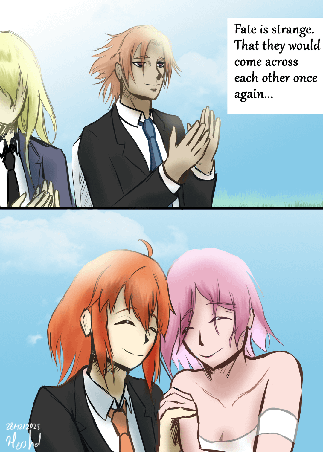 >>551802916>31st rolls around>story content is basically just the start of some boy/girl meets girl VN, nothing about servants or anything>keep seeing a little blonde white girl in your periphery, even when you know she's not there>leads into Foreigner OC as she breaks you out of the illusionSort of the opposite of that one summer event I guess.