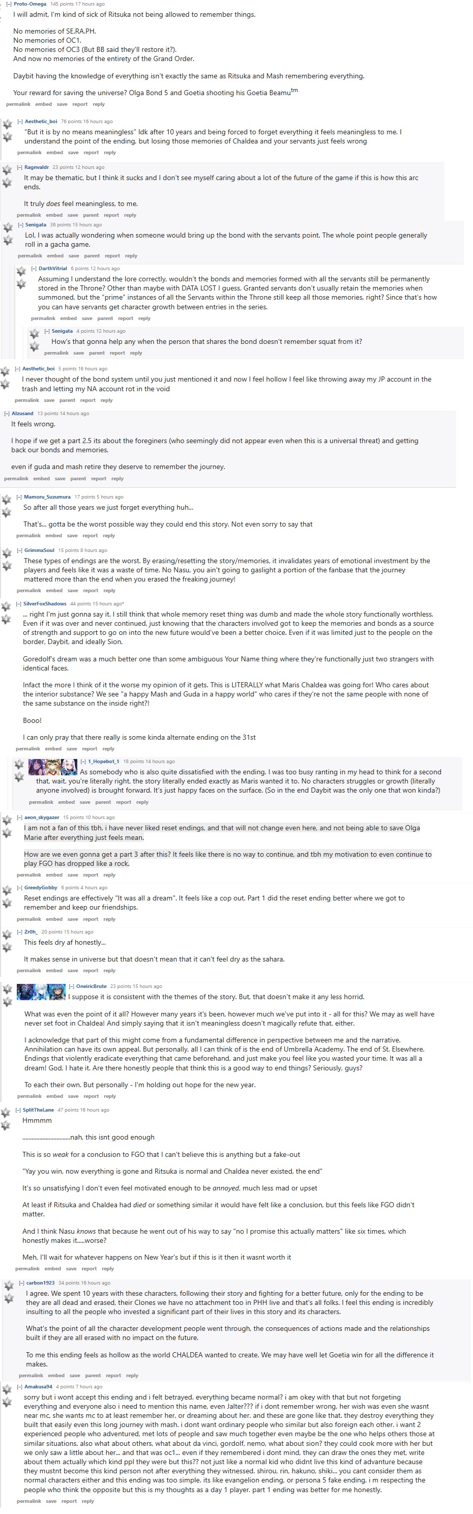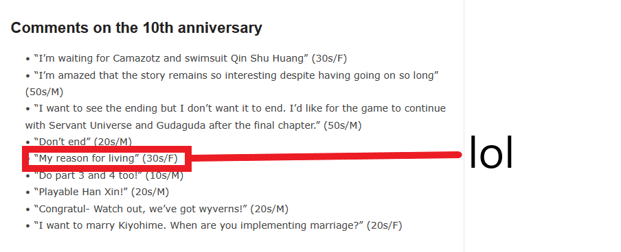 Reading /fgog/ yesterday>everyone hated the endingReading /alter/ yesterday>everyone hated the ending>some are quitting 2 years aheadReading 2ch yesterday>50/50 mix of people who hated the ending and people who think its safe and boringReading JP twitter yesterday>EVERYONE LOVED IT>Reading Reddit yesterday>everyone hated the endingWhy the japanese players on twitter love the ending compared to almost everyone else?