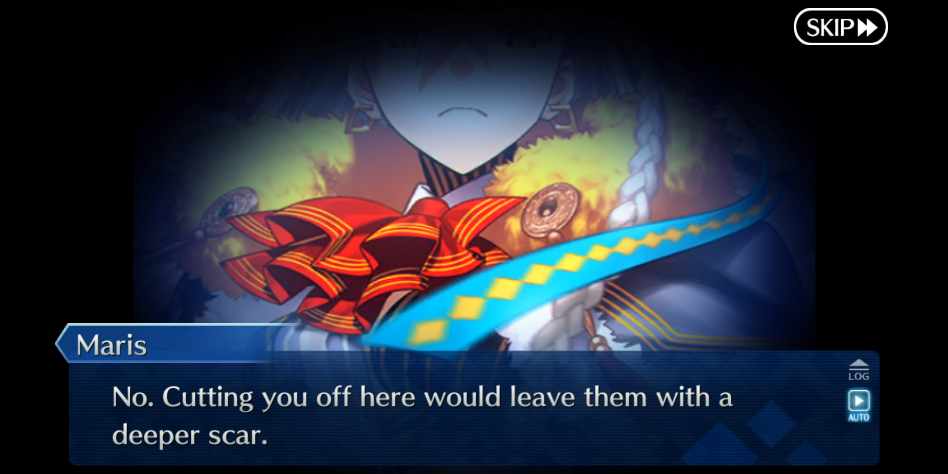 What was presented>Maris "cruelly" discards Olga before dying/fleeing through the dimensional hole What actually happened>Beast VII Olga stopped hiding behind the shell of Maris long enough to tell Guda she was proud of them and got to express her true feelings before she made another Lost Belt to stash them in as a "happy ending"Beast VII was never defeated. It just showed Chaldea mercy.