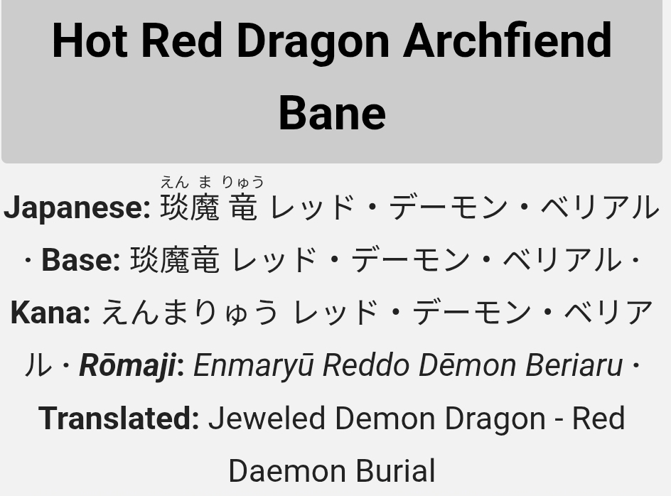 >>551816550I'm more so curious why they choose Jewel Dragon for this.Enmaryu sounds more like it would translate to something associated with the underworld or hell, which makes sense given RDA's general theming. I get that it's hard to condense the Enma section into something but Jewel is such a strange choice.