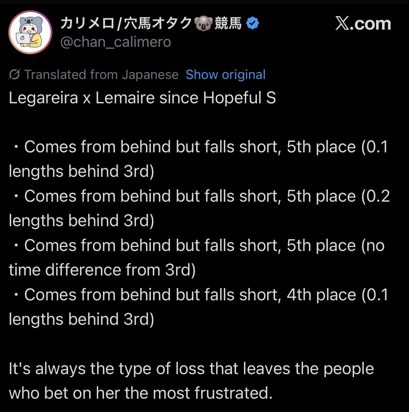 Embodies the hype of umamusume and horseracinghttps://fxtwitter.com/ksmhope/status/2005173023968821522