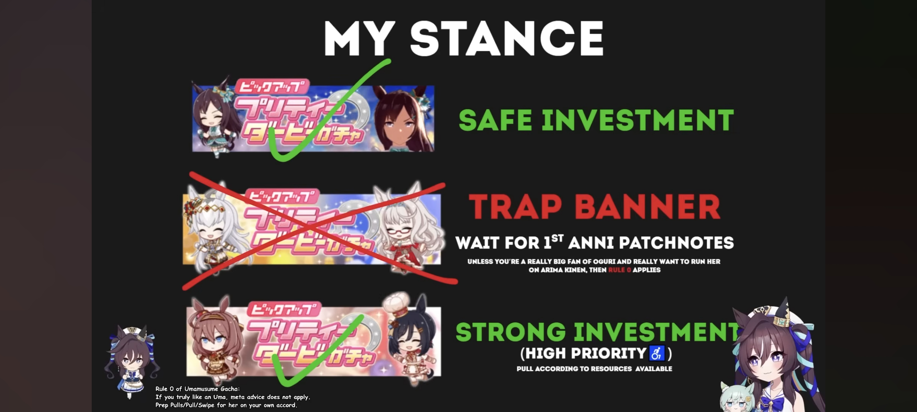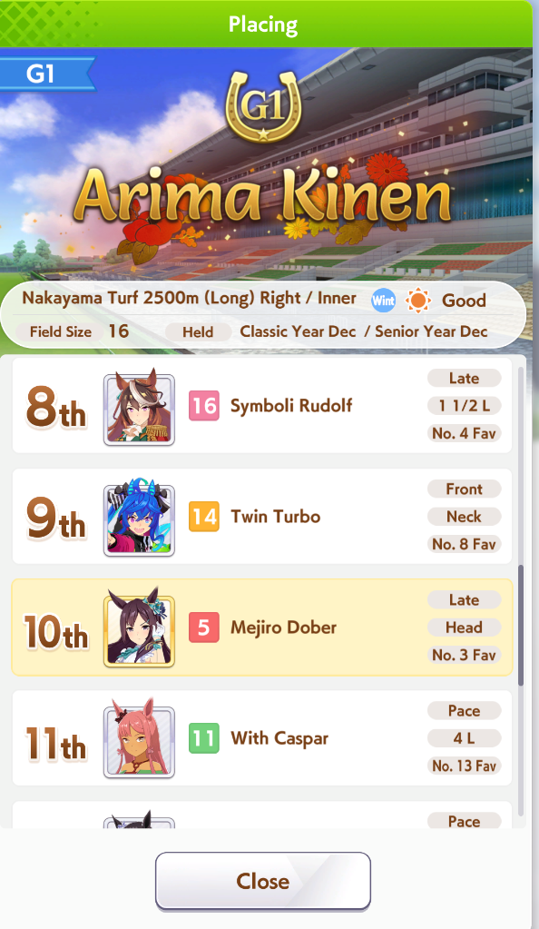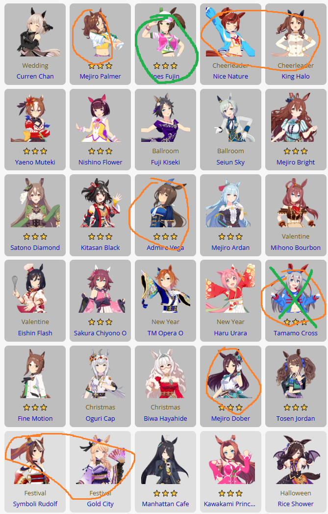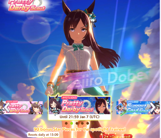 Previous: >>551775363>Global Game NewsLink your account to Cygames iDCurrent Scenario: Aoharu Hai aka "Unity Cup"Current Event: Fuji Kiseki ShowtimeCurrent Rate Up Trainee: Tosen Jordan 3*Current Rate Up Support Cards: Kitasan Black (SSR), El Condor Pasa (SSR)12/28 - Scorpio Cup - Tokyo Turf 2000mhttps://umamusume.com/news/100040/https://pages.snep.pw/uma/anni-skill-changes/>JP Game NewsCurrent Rate Up: NY Sakura Laurel 3*, NY Ikuno Dictus 3*, Oguri Cap 3* (Forma de Cinderella), Stay Gold 3*, Air Groove (Speed SSR), Fine Motion (Power SSR) Inari One (SSR), Mejiro Dober (SR)New Scenario "Yukoma Hot Spring" releasedTimeline: https://uma.moe/timelineCygames Webstore: https://webstore.cygames.com/en/umamusume_en/>IP NewsUmamusume Cinderella Gray 2nd season started weekly airings on 10/5>Thread Clubshttps://rentry.co/umaglobalclublistYou must be E3 (20k points) to join a circle. Apply with /uma/ or /vg/ in your profile or post ID in the thread.>All Guides & Resourceshttps://rentry.org/uma26Game databasehttps://gametora.com/umamusume (Click the gear to switch between JP / global server info)A basic guide for newfagshttps://rentry.org/umaglobalFind networks if your region is blocked from the game or clienthttps://www.umavpn.top/93Seiyuu & Concertshttps://rentry.org/umstUma Texthttps://umareader.idsmile.xyz/