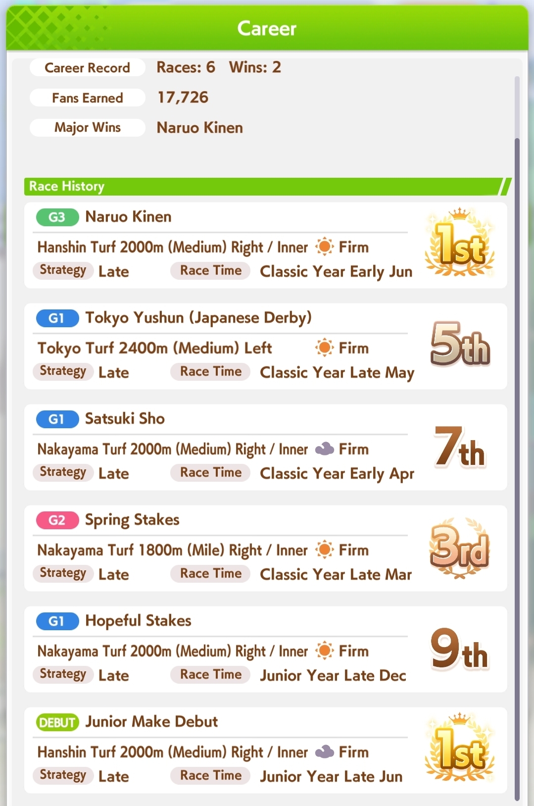 >>551818825End closer city, I already have my Taishin built, just going for Goldship then either End Closer Xmas Oguri or running some Front runner or pace chaser for fun