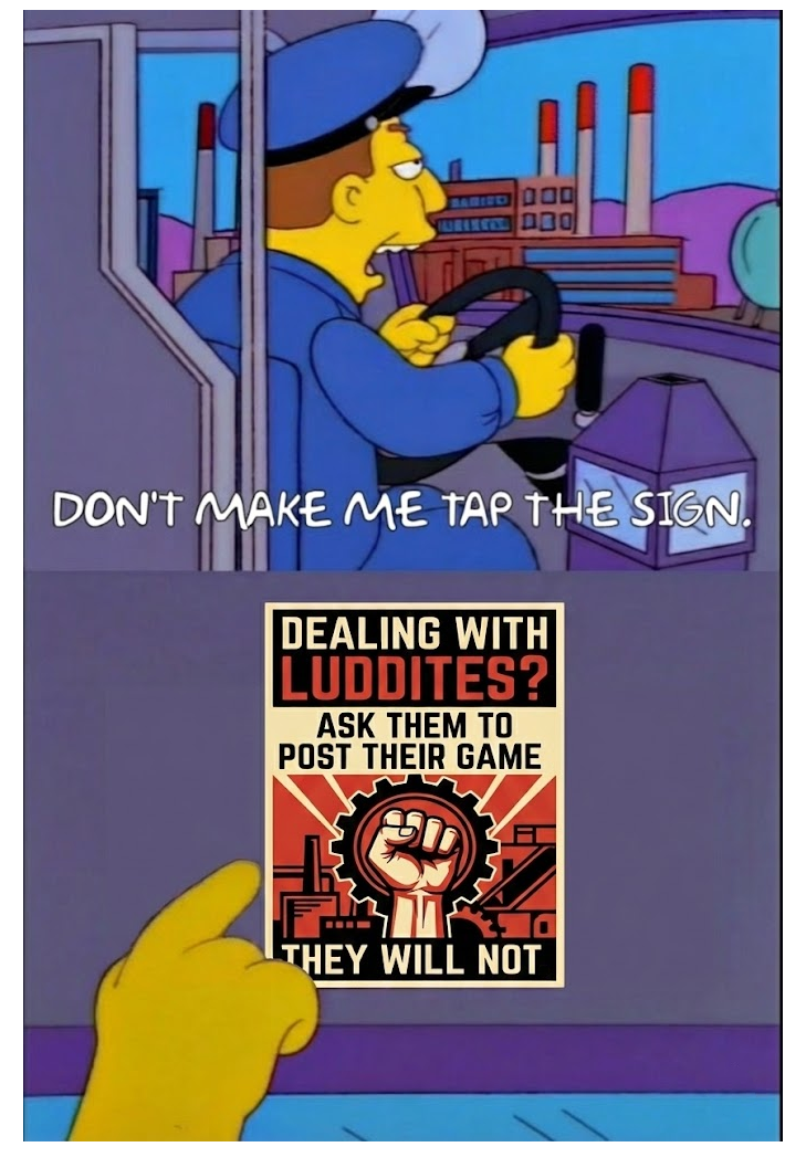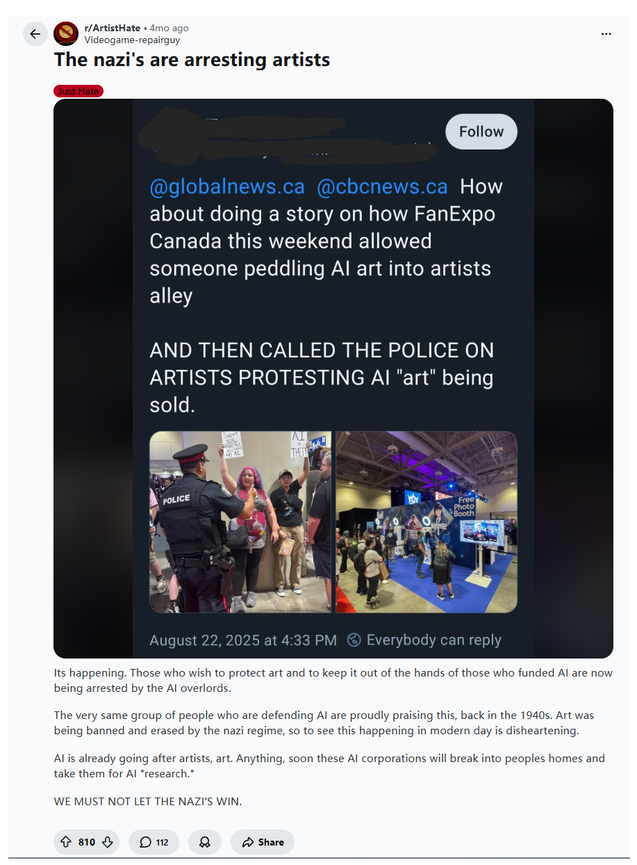 >>551829349>It's so funny how you think so highly of yourself for doing something that requires less out of you.You're implying they do things. This is all they do, what you're seeing right now. This and lurking and circlejerking the subreddits where AI cultists obsess about their war on luddites (other redditors).Also the bait threads in /v/. They have at least one thread going at all times to get their much needed dopamine.