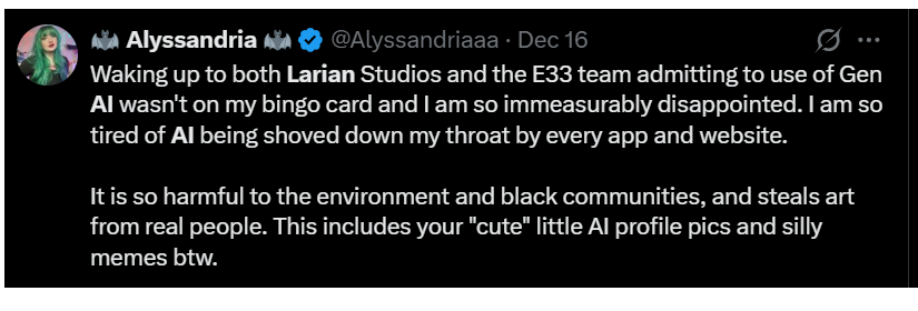 Most rich and/or retired artists are cool with AI. The backlash against AI is obviously being pushed by people who see it as a threat to their jobs or potential to make money from their game. Boohoo nigga. Learn to adapt.