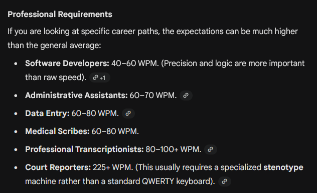 >>551864189I just tested my wpm and it's 75. Just another sign of my overall inferiority. Lucky that AI is taking over and that even the top humans will be outclassed soon enough.