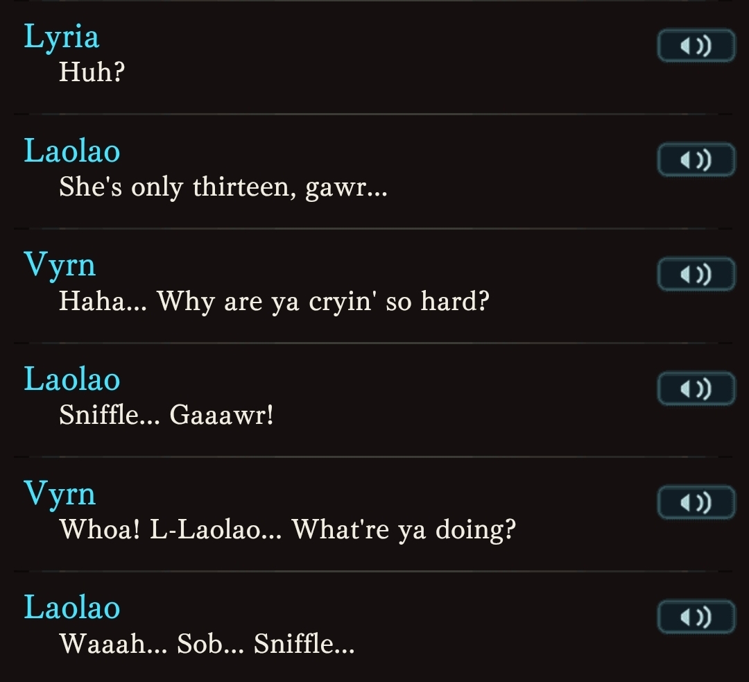 Laolao crying over Sandira being more mature than his daughters while only being a year older is silly.What really should make him cry is the 10 years old Anchira being more mature than girls 3 years older than her, a girl that is not even supposed to be mature for her age, the tigers are just that childish.