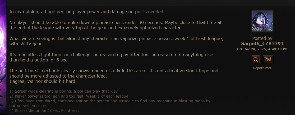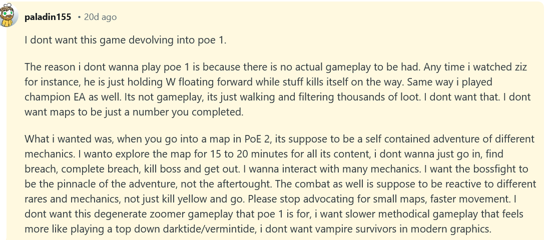 >big explosions and fast gameplay is a bad thingwhy are poe2 imbeciles like this?