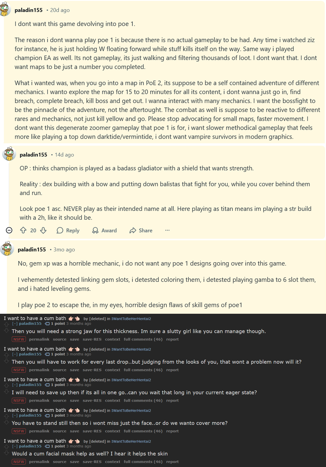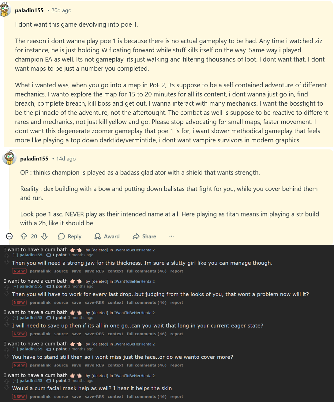 >>551930480fubgun is already playing poe1 in poe2 and that's finethe question is why all the whining shitters complaining about rollslop can't just copy him and stfu while I enjoy the meaningful combat and 3+ button builds. I might even do a parry build next league and there's nothing anyone can do about it.