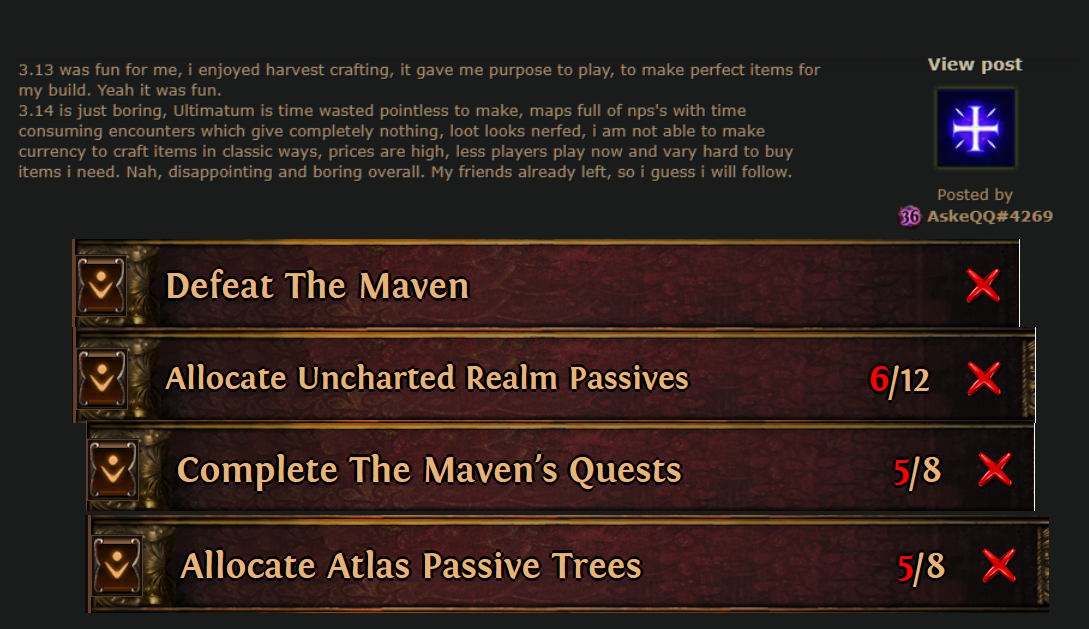 >>551988412>"3.13 was le epic!! i could make perfect items with da editor!">doesnt even complete half the atlas regions>doesnt kill mavenepic