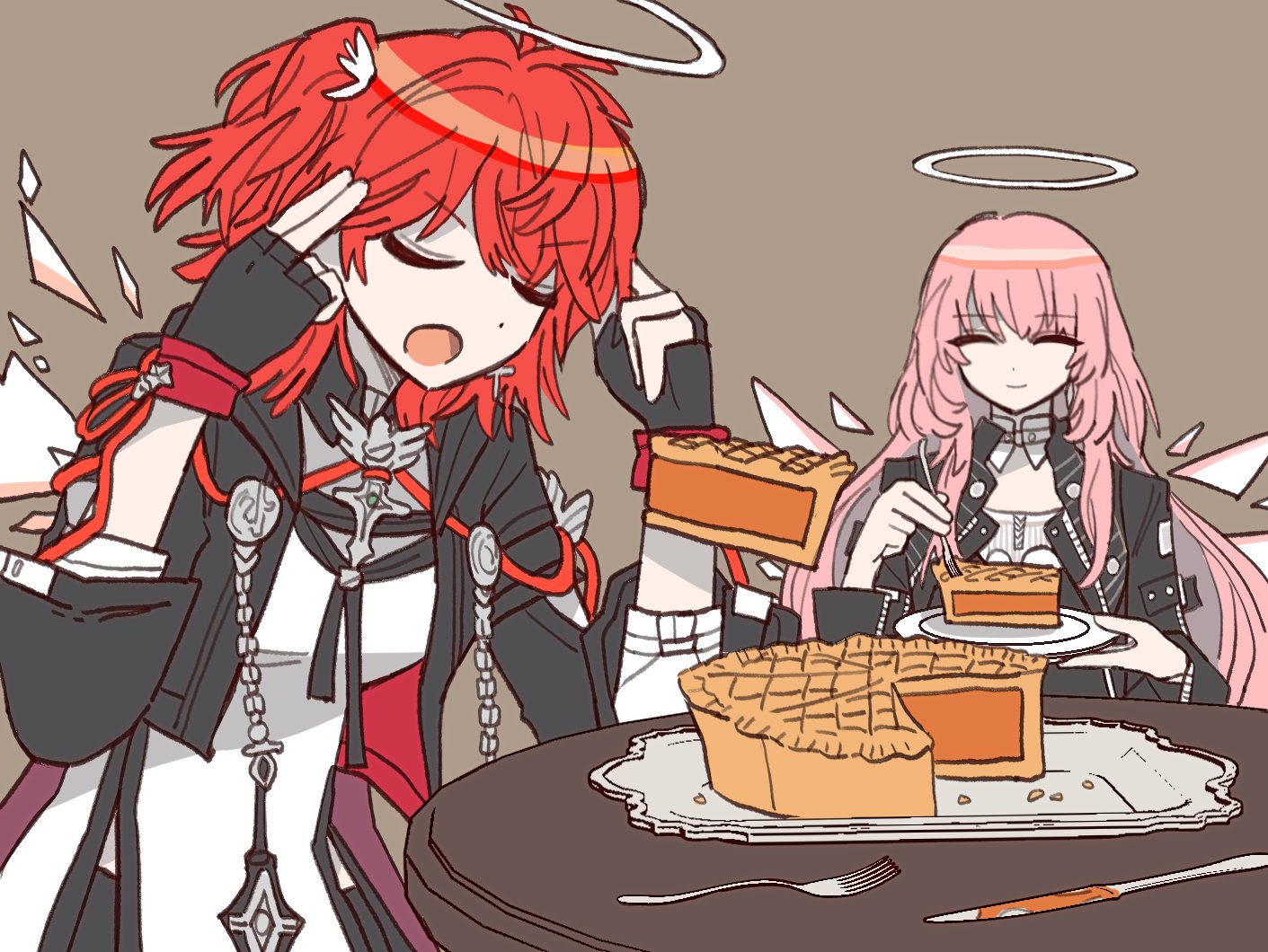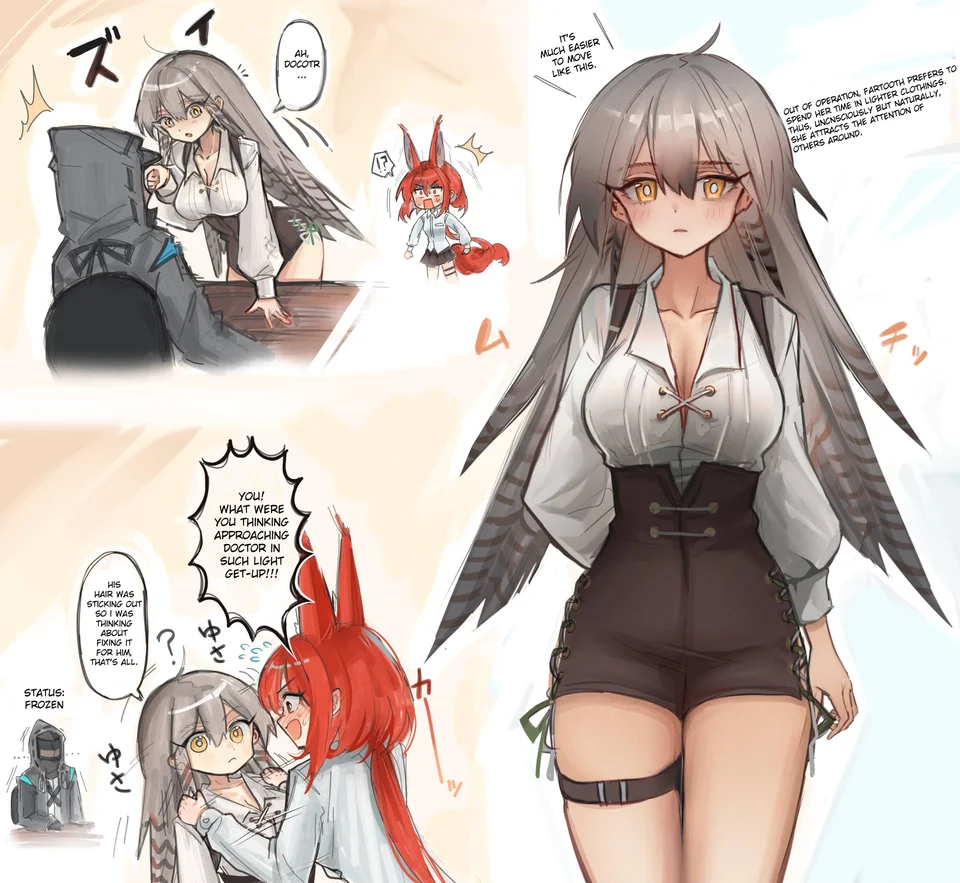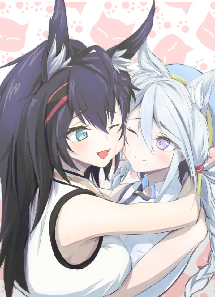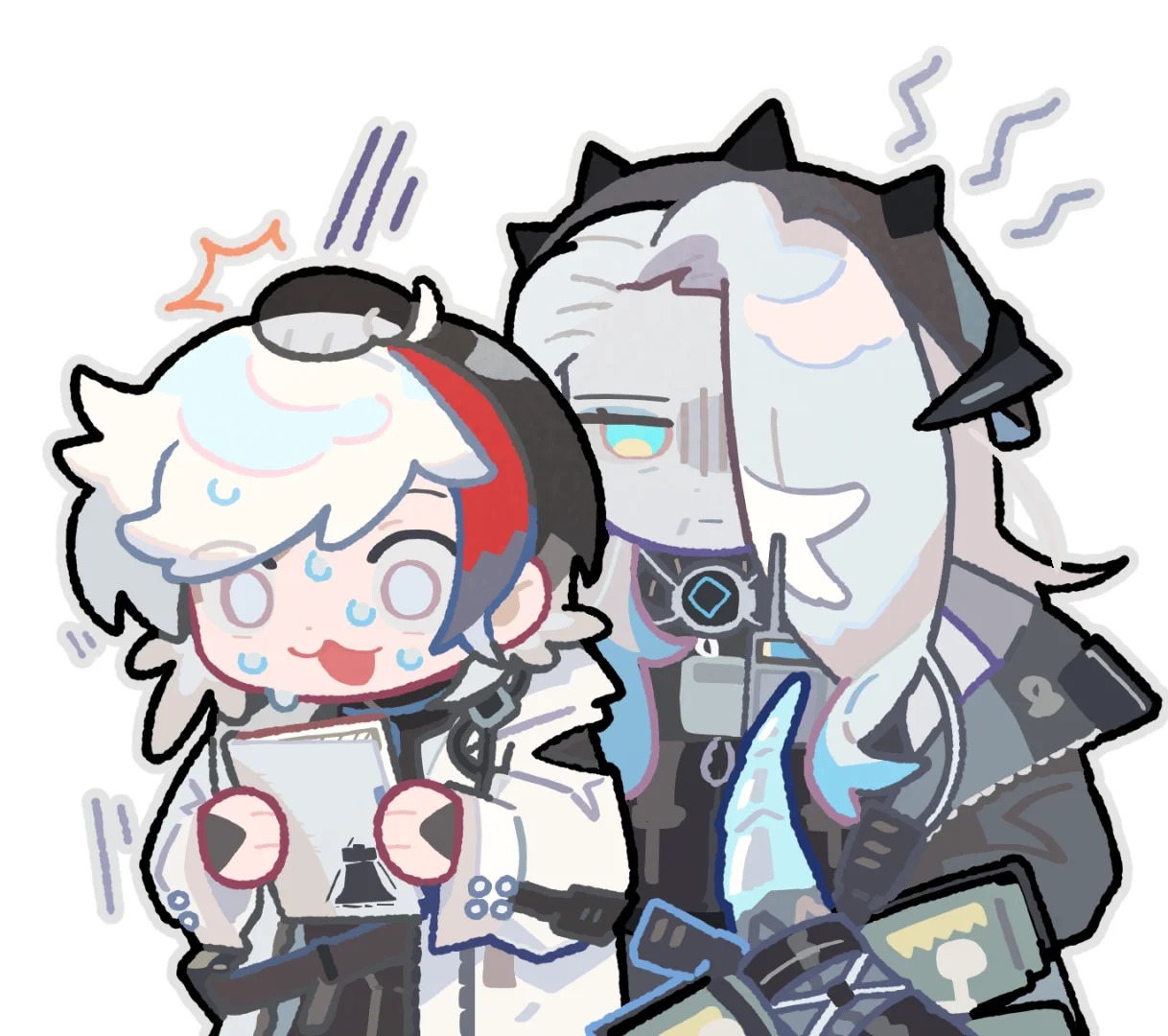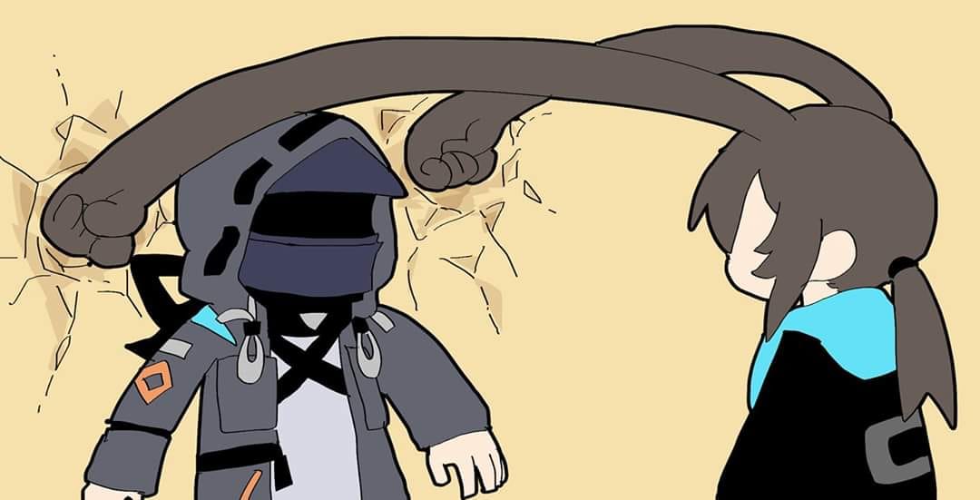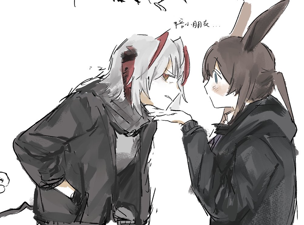 >This image shows fan art of the characters Ora and Pri from the mobile game Arknights.