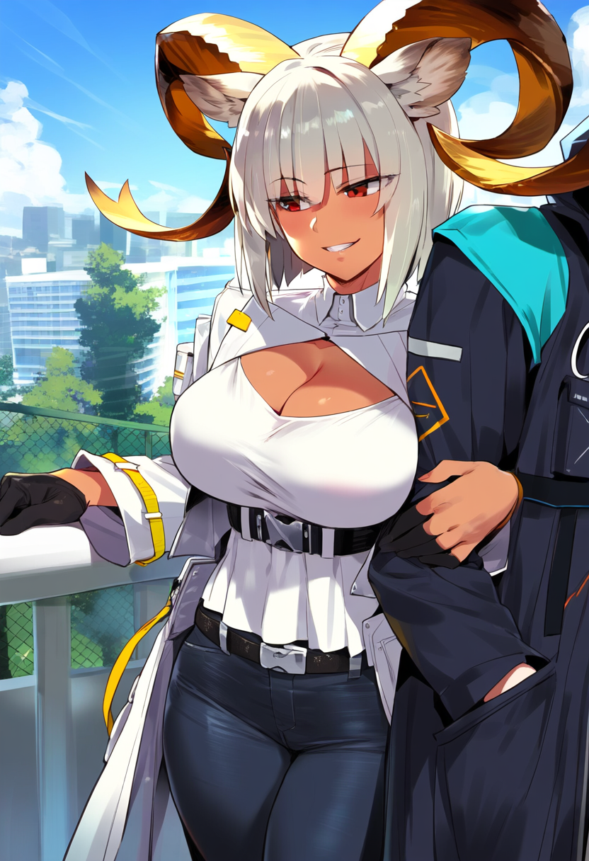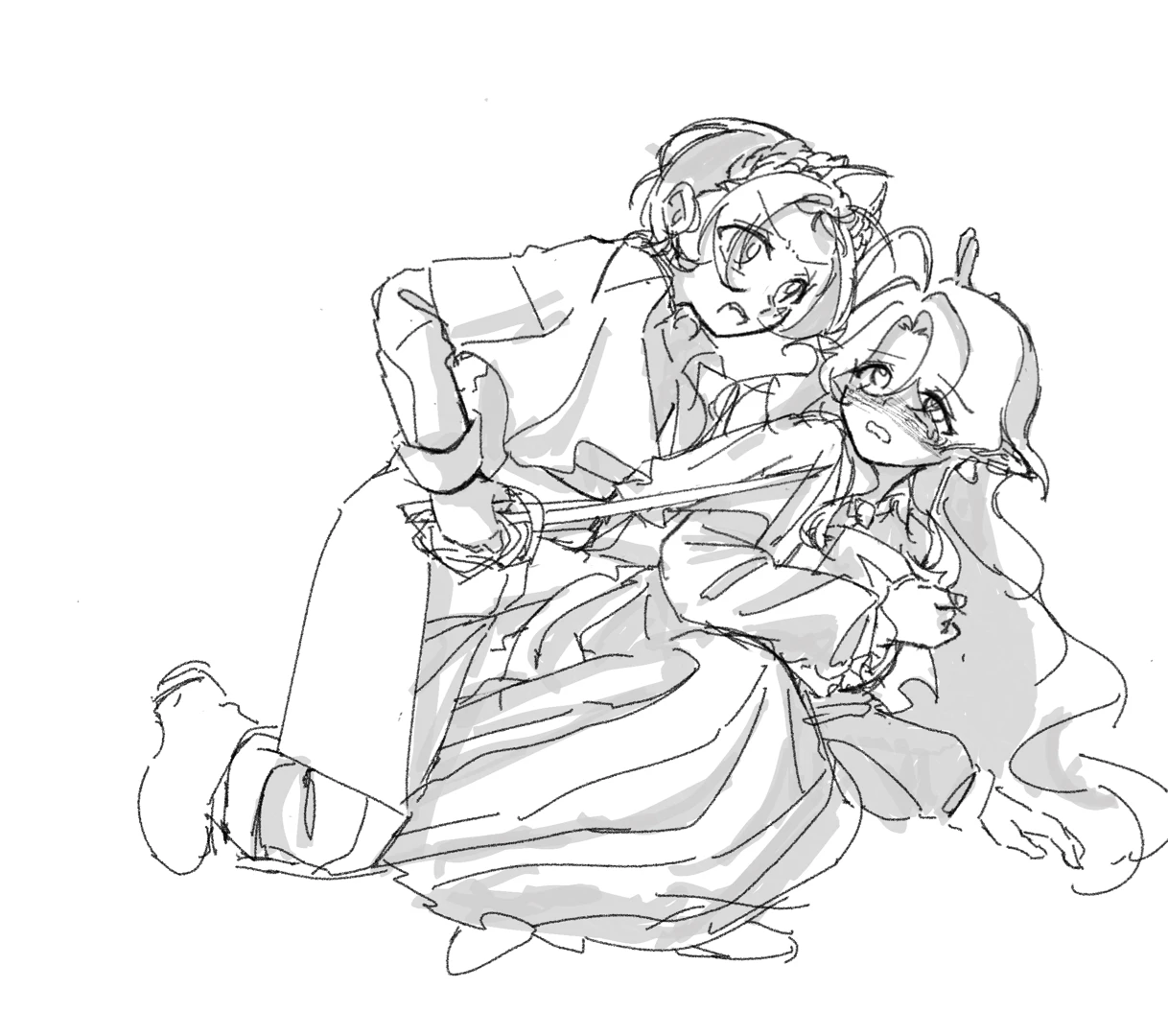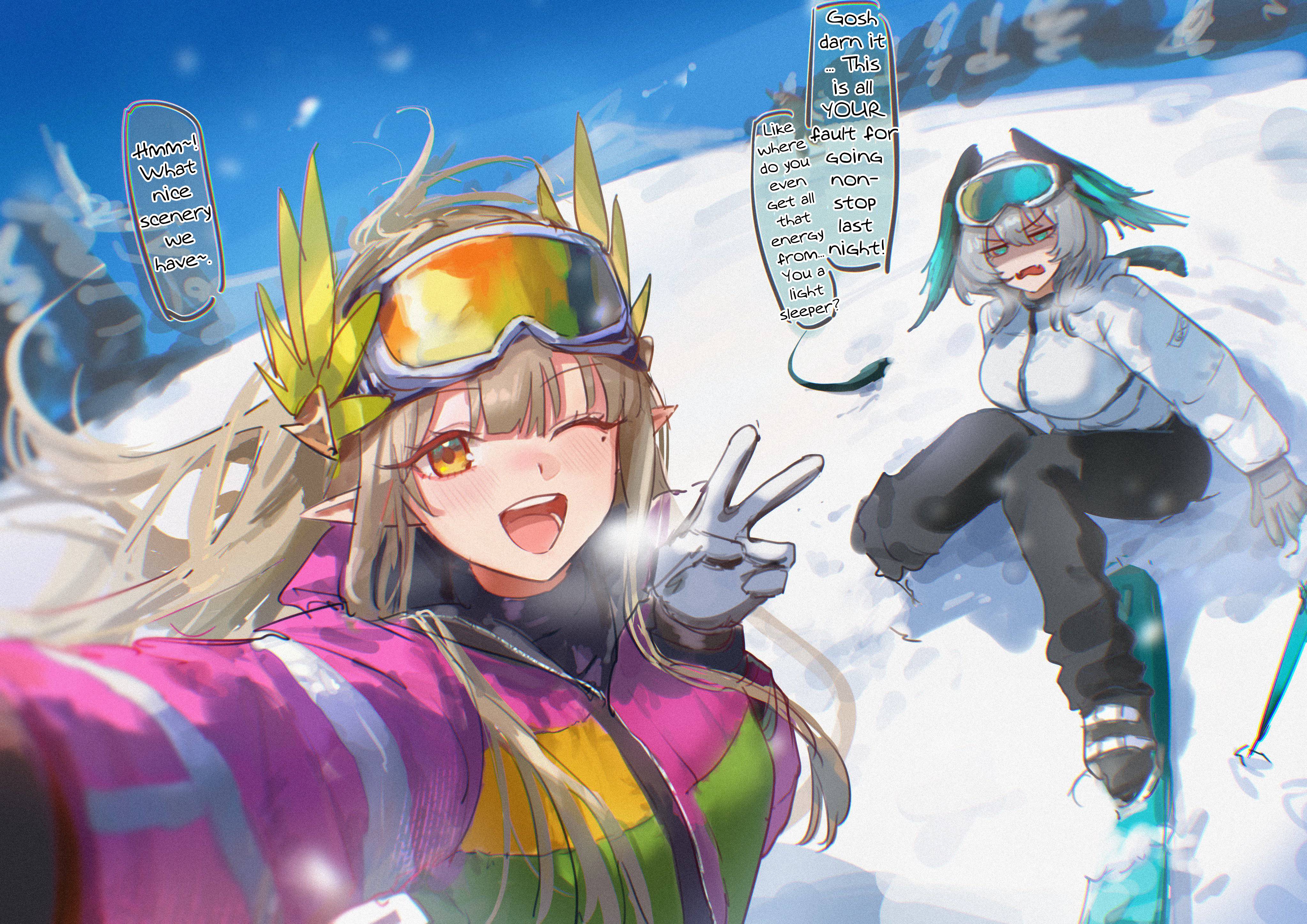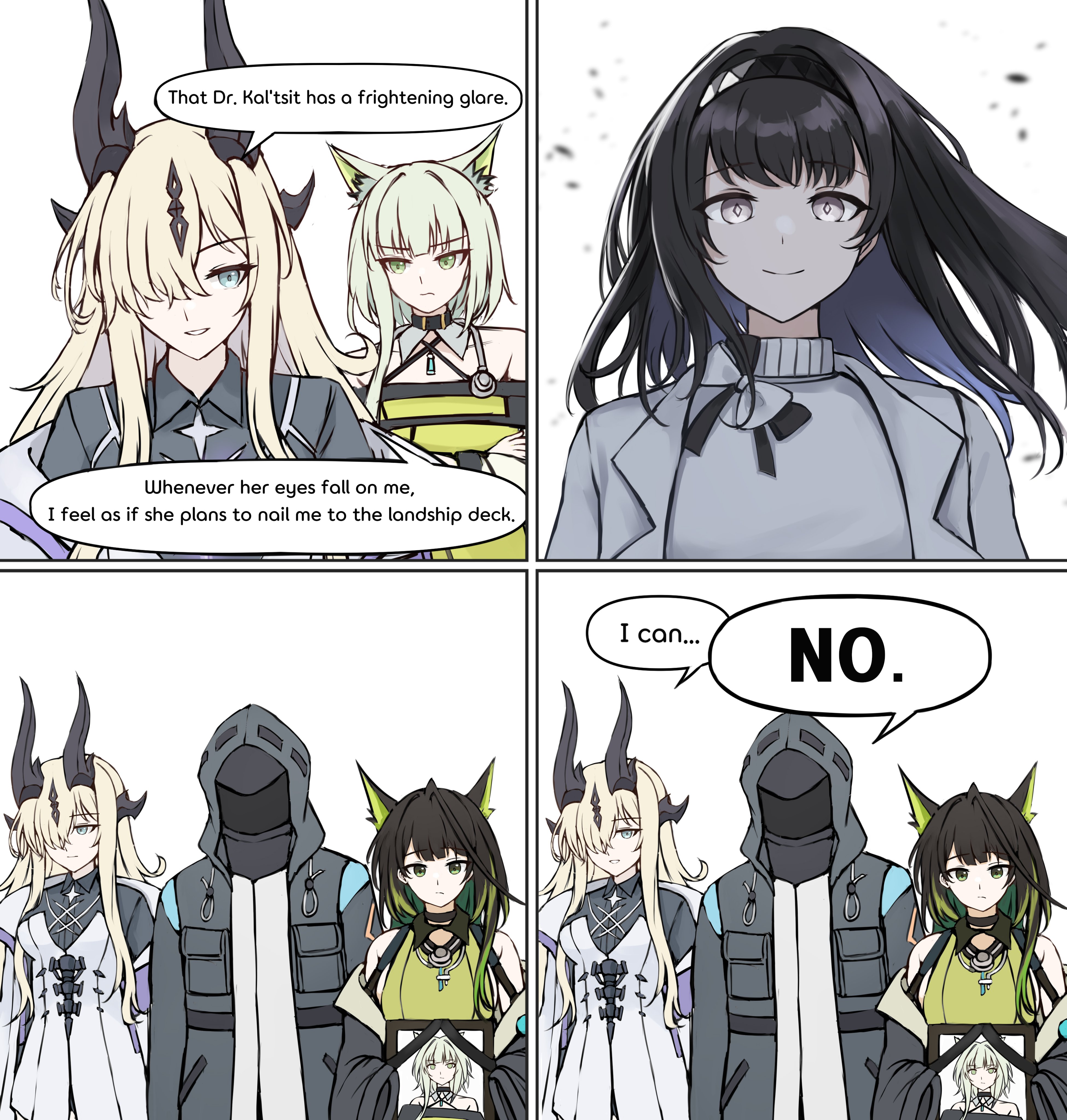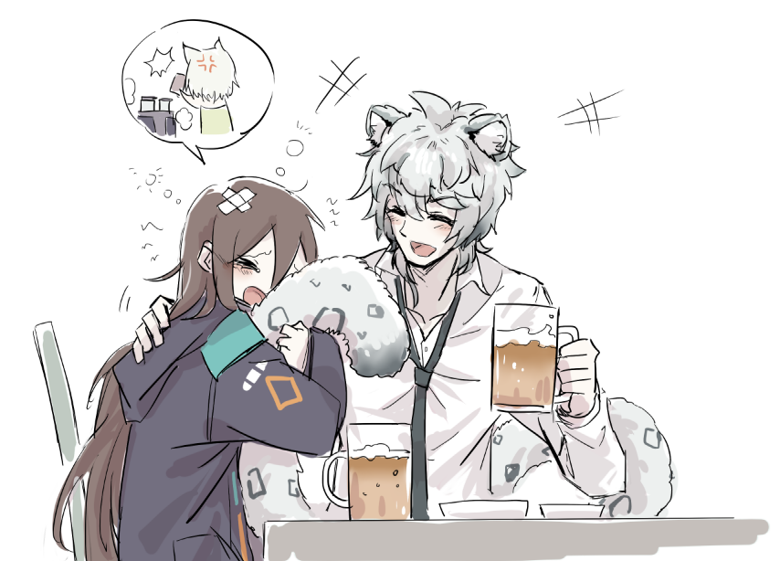 >This image shows fan art of the characters Ora and Pri from the mobile game Arknights.