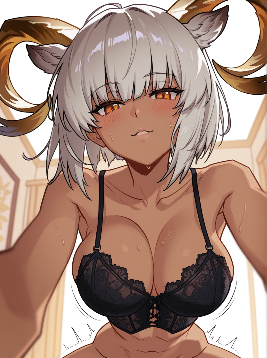 Angelina trying to hide her dripping arousal and frustration from being locked for so long.