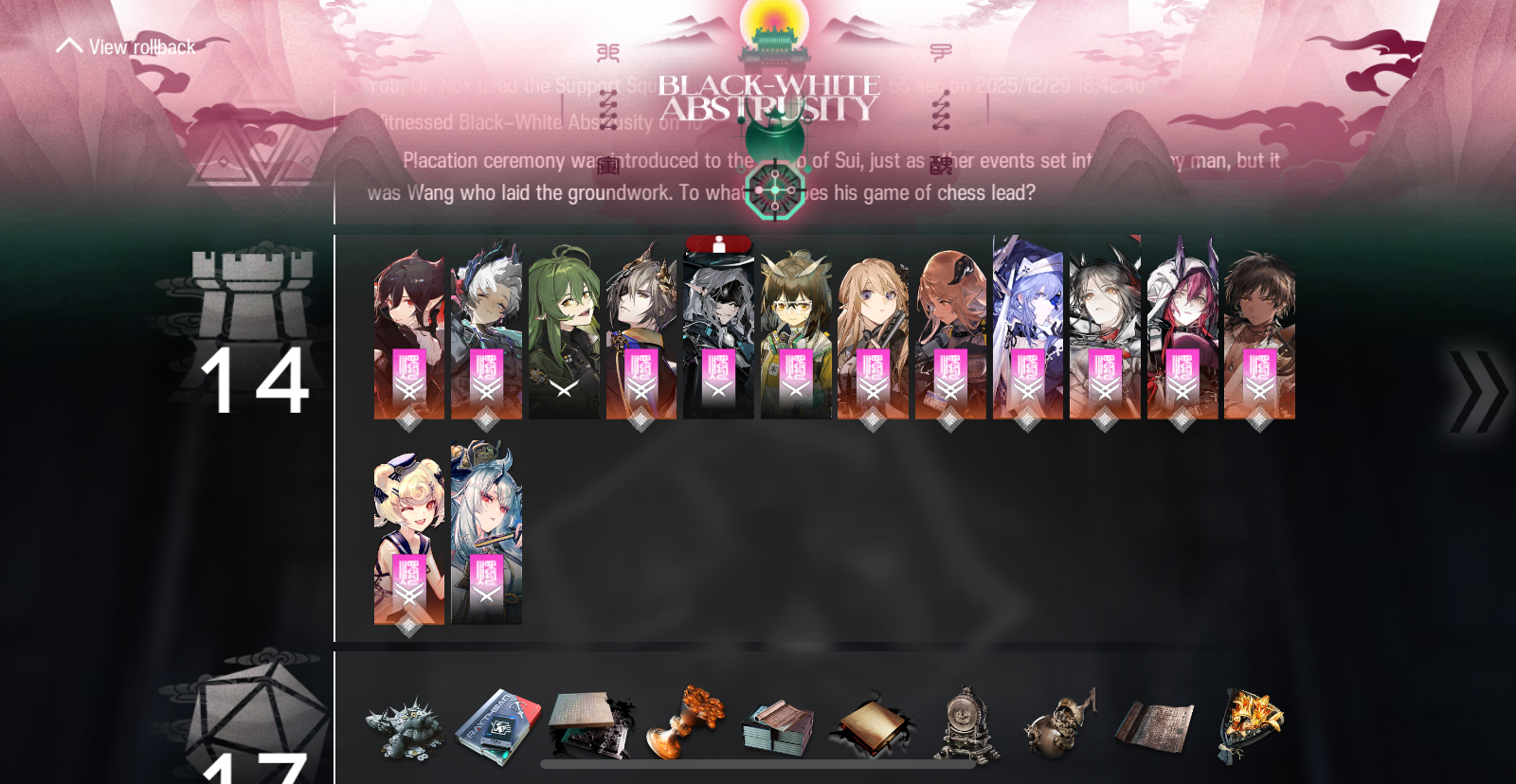 Previous thread: >>551903097Happy birthday to Kazemaru!>CURRENT, FUTURE GLOBAL/JP/KR CONTENT:[12/19-1/2][Standard]6* Caster Blaze the Igniting Spark, 6* Supporter Stainless (Shop), 5* Supporter Grain Buds, 5* Specialist Wulfenite, 5* Sniper Lunacub (Shop)[12/11-1/1][0011, Coral Coast & EPOQUE]Lin; Pozëmka, Cuora; Ulpianus[12/18-1/8]Arknights × Taiko no Tatsujin - Myrtle skin[12/23-1/20][Test Collection]Amiya, Rosmontis, Zuo Le[12/18]IS#6: Sui's Garden of Grotesqueries - 6* Supporter Raidian>CURRENT, FUTURE CN CONTENT:[12/18-1/1][Standard]6* Defender Penance, 6* Guard Qiubai (Shop), 5* Caster Bobbing, 5* Sniper Melanite, 5* Defender Firewhistle (Shop)[12/19-1/2]Exodus from the Pale Sea Rerun - Rose Salt skin[12/19-1/2][Confirmation, Conduction, Completion Rerun]6* Specialist Thorns the Lodestar, 5* Caster Tecno, 5* Specialist Almond[12/26-1/9]TFN#6 - Bubble skin>/akg/ website:https://akgcc.github.io>AK EN Database:https://puppiizsunniiz.github.io/AN-EN-Tags/akhrchars.html>More valuable resources:https://rentry.org/akg_resources>/akg/ merch guidehttps://rentry.co/akg_merch