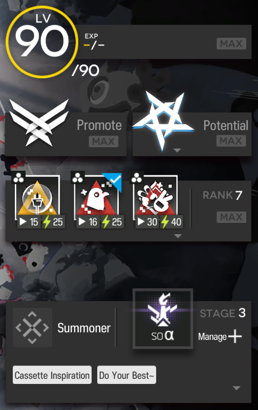 >>551961565NTA but for A2 you only need Raidian, and grabbing one (pic related is a friend's e2 level 80 raidian) from support is enough. This clear was also with Suport Squad which is the 20 ingots and 2 hope start one.It's not even funny how easy it is, she solos most stages and at A2 she was oneshotting most enemies.
