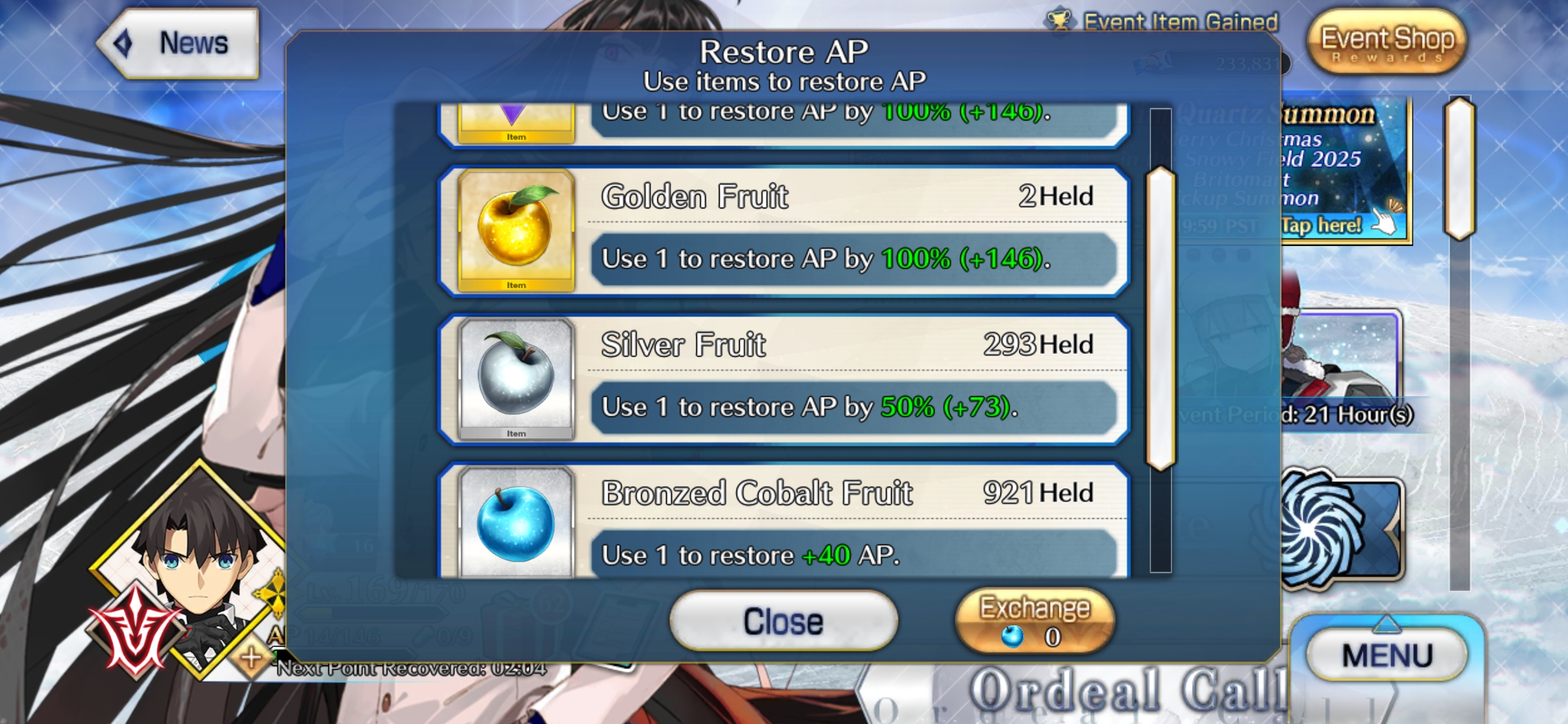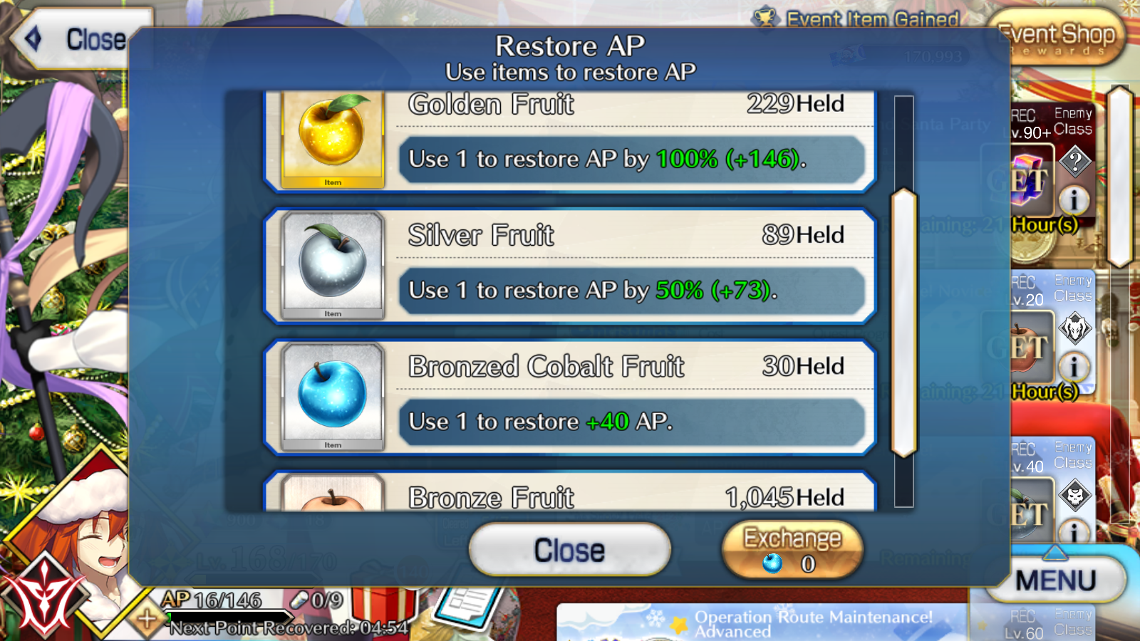 >>551995624Blue Apples for me until I level to 170, gotta make sure silvers/golds give as much APs as possible