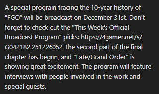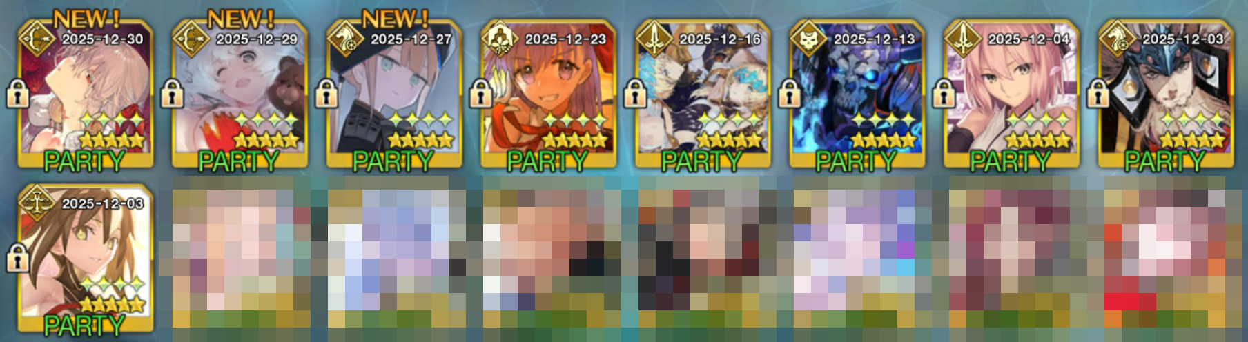 Previous: >>551902998>[Event] Merry Christmas in the Snowy Field 2025 - 7 Days/8 Years Snow Carolhttps://webview.fate-go.us/2025/1219_christmas2025/2025-12-19 00:00 - 12-31 19:59 PST>[Campaign] Advent Calendar 2025https://webview.fate-go.us/2025/1127_advent_calendar2025/2025-11-30 20:00 - 12-25 23:59 PST>[Campaign] Christmas 2025 Pre-Release Campaignhttps://webview.fate-go.us/iframe/2025/1208_christmas2025_cp/2025-12-10 20:00 - 12-31 19:59 PST>[Campaign] New Year's 2026 Countdown Campaignhttps://webview.fate-go.us/iframe/2025/1223_ny2026_cdcp/2025-12-25 20:00 - 12-31 19:59 PST>[News]https://webview.fate-go.us/>[Servant Info]Servant Material Lookup: https://fgosim.github.io/Material/Servant Planner: https://github.com/chaldea-center/chaldeaCoin Calculator: https://fgo-servant-coins.glitch.me/index.htmlRank Up + Interlude Timeline: https://kazemai.github.io/fgo-vz/relate_quest.htmlRate Up Tracker: https://tohnocoding.github.io/fgobanners/>[Mats/Summoning Info]Rateups in FGO JP: https://files.catbox.moe/lf1qmz.pngQuartz for next Summer: https://docs.google.com/spreadsheets/d/1iRH60QpLNvHy9MMDKLJGNSg4s7FsDfdXtJtOUVDj5po/edit?gid=162156045#gid=162156045FGO Event Compendium: https://docs.google.com/spreadsheets/d/1qvxLU407QwiFaCvItqR16SqqAVlLD5u5nBzY_bCFYvs/edit#gid=2111060397Drop Rates: https://docs.google.com/spreadsheets/d/1_SlTjrVRTgHgfS7sRqx4CeJMqlz687HdSlYqiW-JvQAFGO Raw Database: https://apps.atlasacademy.io/>[FAQ]https://rentry.org/alter-faq