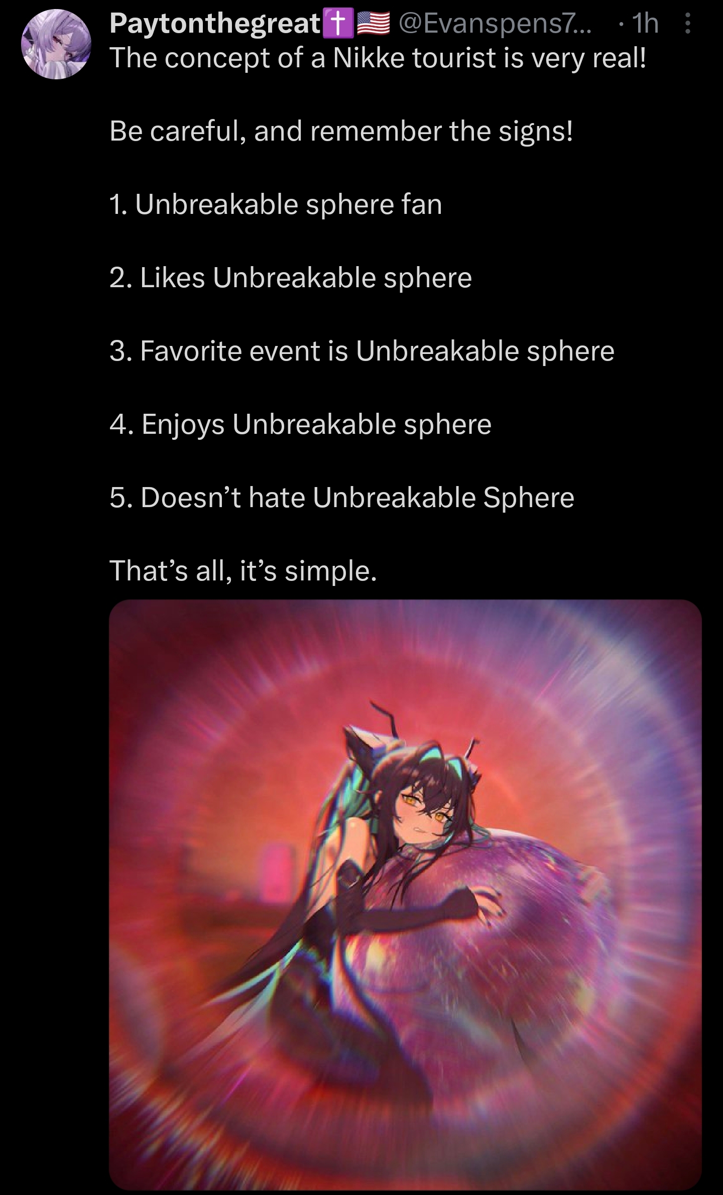 >>551961604>>551961686>>551961756Because the "doomposters" are people who have spent years playing the game and are hoping it'll get better eventually? What, you think because I criticize things in nikke that means I'm an oopygoopy goober raider or whatever? What kind of retarded logic is that?