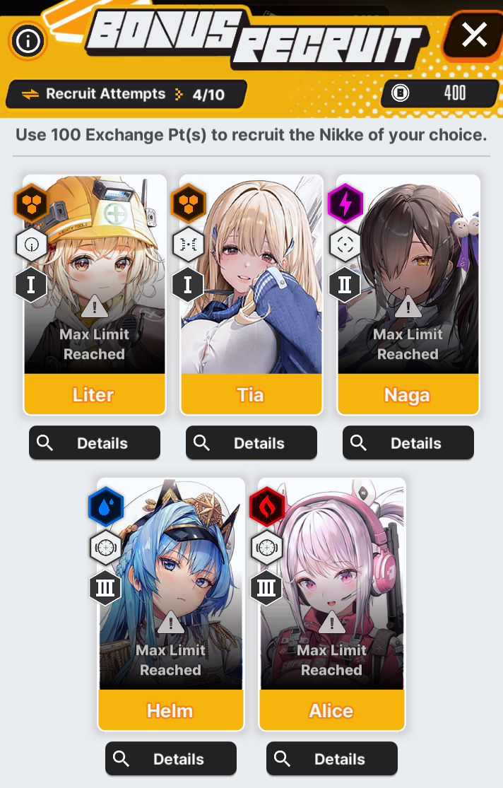 What happens if I click on Main Nikke on the top right of the details page?