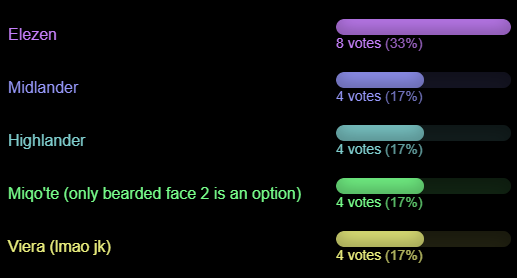 >>551982551>if you weren't in xivgI was in /xivg/ before you. I was there at the very beginning. I learned of FFXIV from /xivg/. You're lucky I don't have any of my old screenshots from back then. I'd post how my lalaboy originally looked.> I don't like youJoin the club! I hear there's a potluck this coming up Sunday for the "We Hate SK but Always Reply To Him" social club.>>551982469Please stop skinwalking. It's undignified.