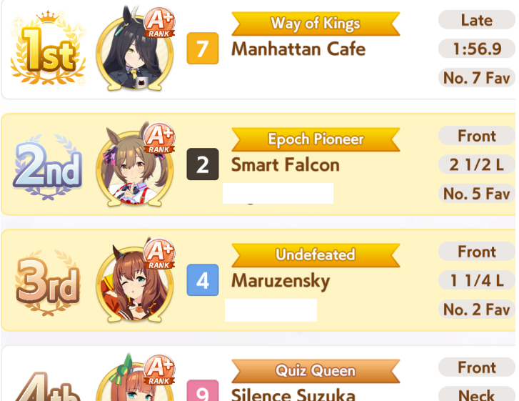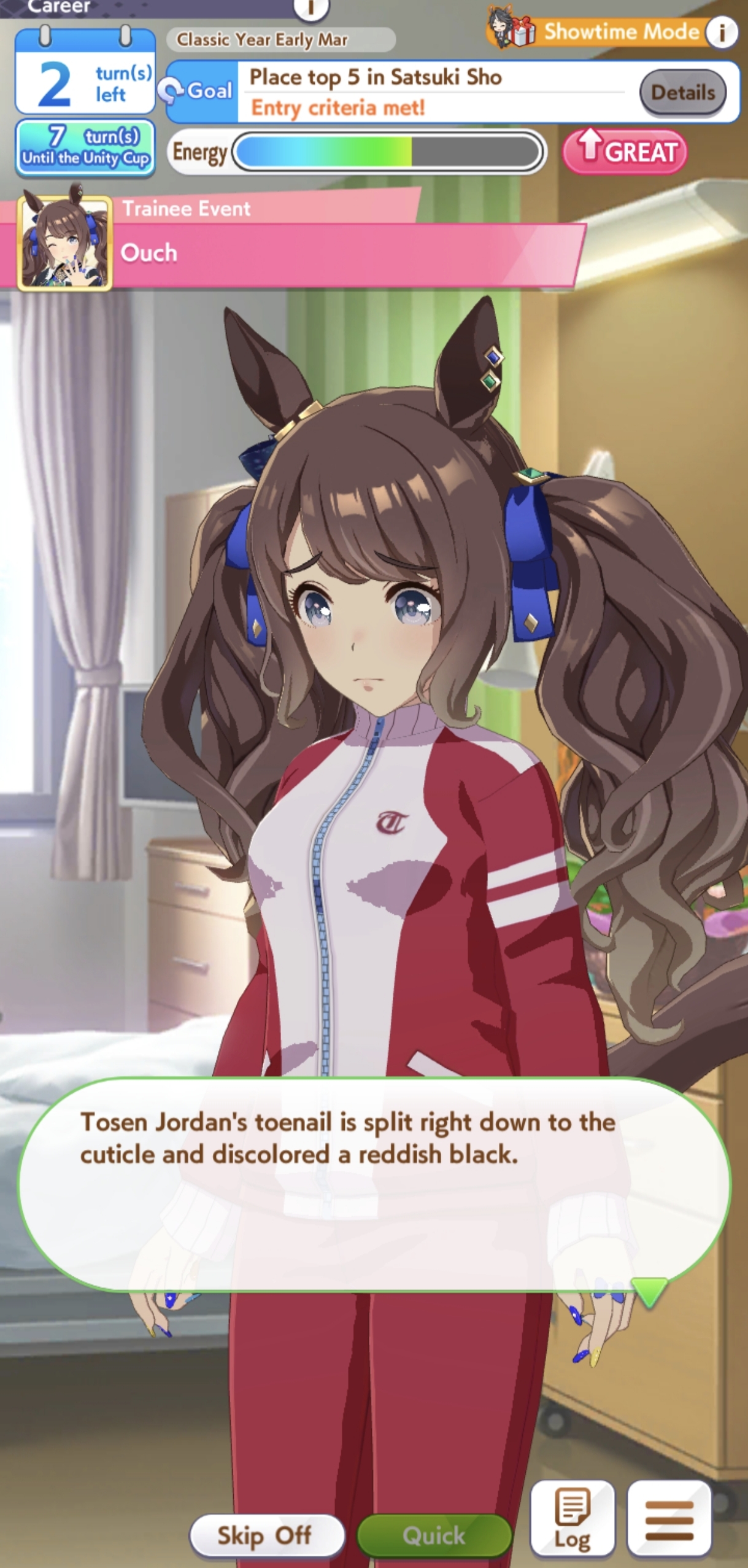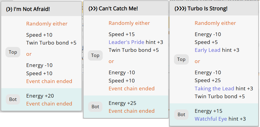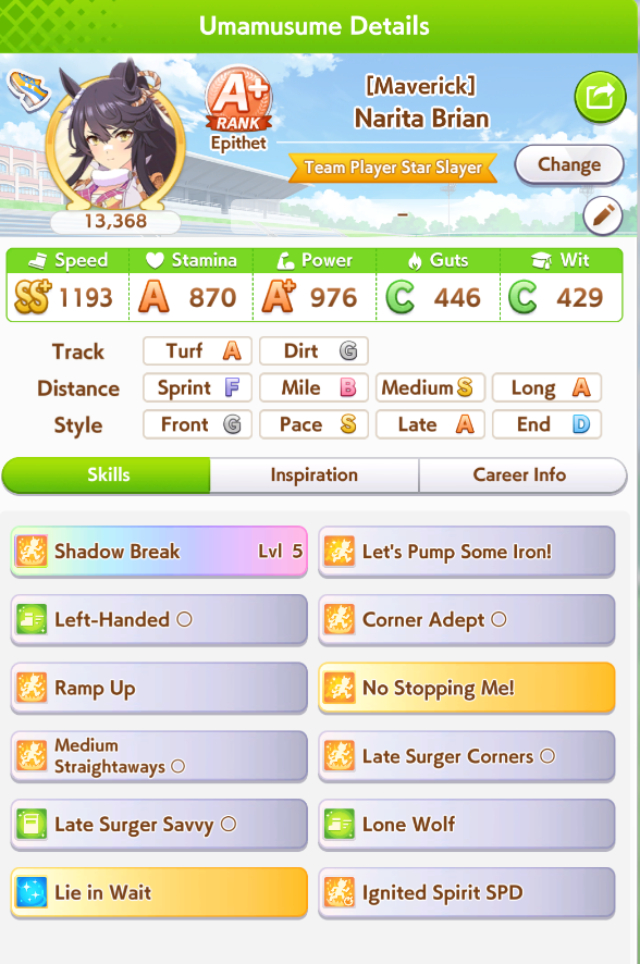>>551974552some days it feels like the game really hates your guts. Ive had 10 mood downs over 2 suzu careers. Ive had awful inspo on all my careers today. Except Brian - where I proceeded to get stomped by cracked rice despite having 600 stam+300+ guts. She had a massive 300 speed...