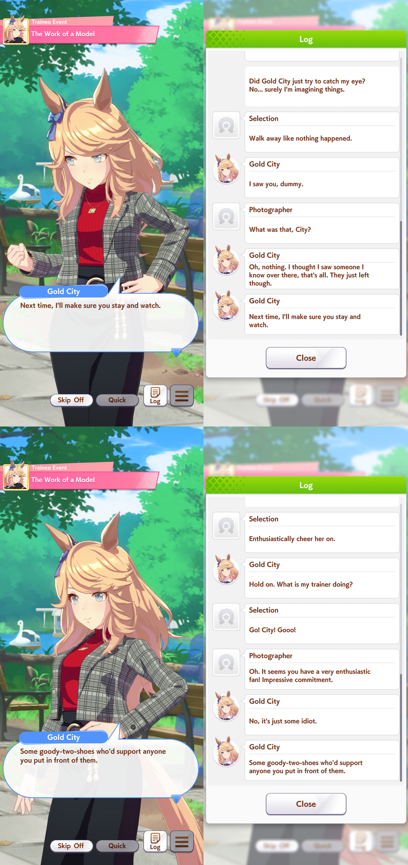 >>551974165We don't. Curren is a nice girl. Personally I can't get into the character though, even though I more or less like her, because she never really opens up as far as I know. She's just always the hardworking, skillful social media performer who never misses a beat. She's always on top of things; you don't get to see behind her mask. I read her whole scouting story and career story and I can't think of any other aspects of her. She could be interesting but she's just too hard to get to know, the way they've written her.