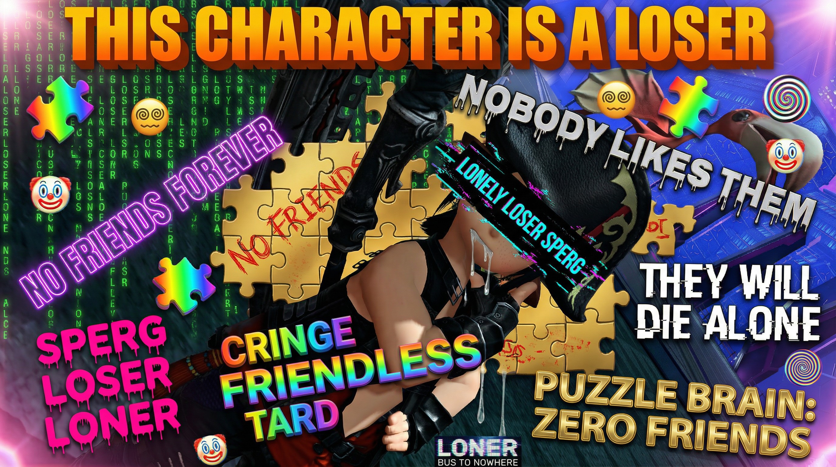 >>551995523not your thread enemy, if you even have onepeople just don't like you and find you cringe af, the pics simply do a good job showing hownow seethe some more about people targeting each other