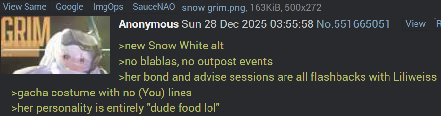 >>551997623i didn't like the potatoes, maybe i play one of thoses other good looking gachas anounced a while ago...