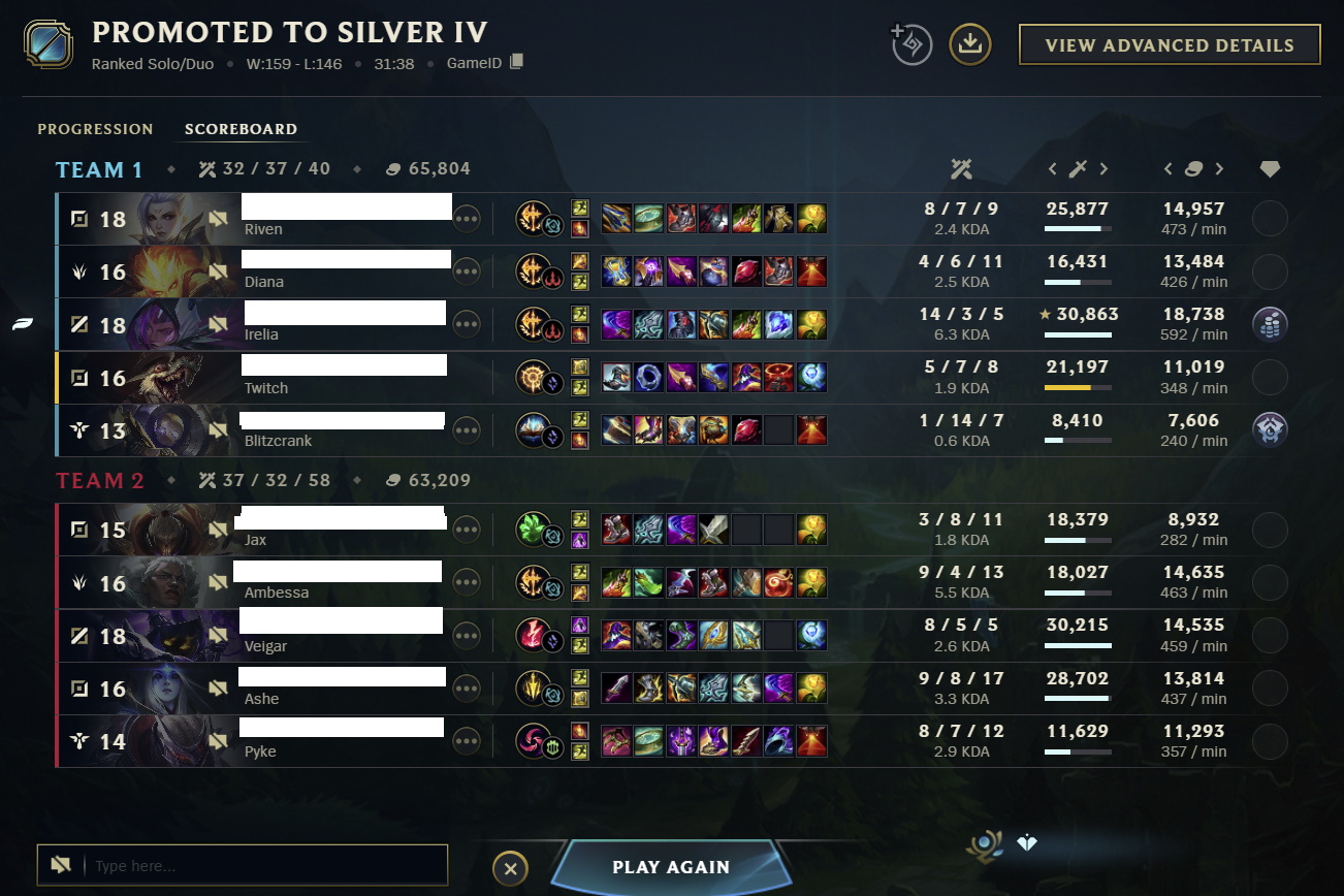 Can't get out of bronze two because all my opponents are gold 1. This is so unfair.