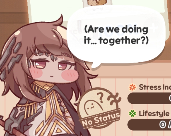 >hit lifestyle level 5 with supiki>forced to do her lifestyle story (i wanted to save it for later)>she forces you to sleep with her>relationship jumps all the way up to 21I didn't consent to any of this...