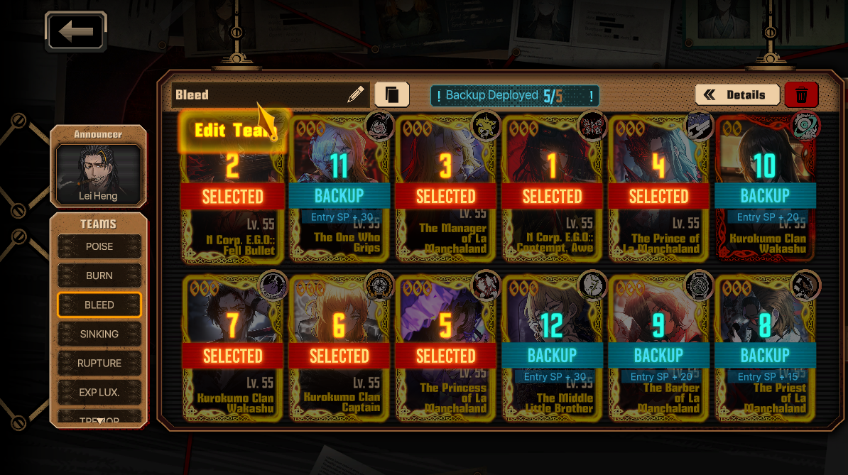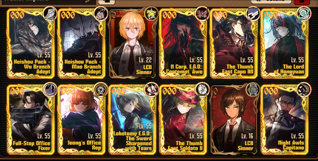 Previous thread: >>552027705Season 6 - 葬花吟 [Zàng Huā Yín]2025.05.15 — 2025.12.31Season 7 - Kumo no Ito2025.12.31 —Mirror Dungeon #6 - Mirror of Immortality2025.07.03 —Refraction Railway Line 5 - Merry Go Round2025.02.20 —>Current Events>Current Extractions2025.12.18 — 2025.12.31[000] R Corp. 4th Pack Reindeer Rodion2025.12.18 — 2025.12.31Target Extraction: [ Outis ] ID & E.G.O>FAQs! This game is directly tied to the setting of Project Moon's previous games, Lobotomy Corporation and Library of Ruina, and is set after both. Expect spoilers for those games in this thread.! The tutorial is important.>Download linksAppStore: https://apps.apple.com/app/limbus-company/id6444112366Google Play: https://play.google.com/store/apps/details?id=com.ProjectMoon.LimbusCompanySteam: https://store.steampowered.com/app/1973530/Limbus_Company/>Other linksOfficial twitter: https://twitter.com/limbuscompany_bOfficial youtube: https://www.youtube.com/@ProjectMoonOfficialOfficial site: https://limbuscompany.global>Required readinghttps://mega.nz/folder/xosDkZ5Z#Wt4JpUt5Bb2XG77pxuuXpw>For all your EGO and Sinner info needshttps://limbus.kusoge.xyz/https://gll-fun.com/en/>Useful resources and a general guidehttps://rentry.org/lcg_resourceshttps://rentry.org/lcbguidehttps://rentry.org/LCB_optimal_grind_guidehttps://lcb-days-since-last-id.carrd.co/https://lcb-days-since-last-ego.carrd.co/>Countdownhttps://lcbcountdown.carrd.co/