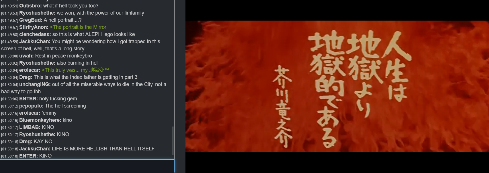 >>552075478There were a lot of kino quotes in Hell's Screen that I'm sure we'll get to see in canto 9 :)