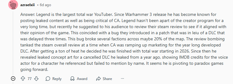 End of Year Retrospective and looking ahead to 2026: https://community.creative-assembly.com/total-war/total-war/blogs/92