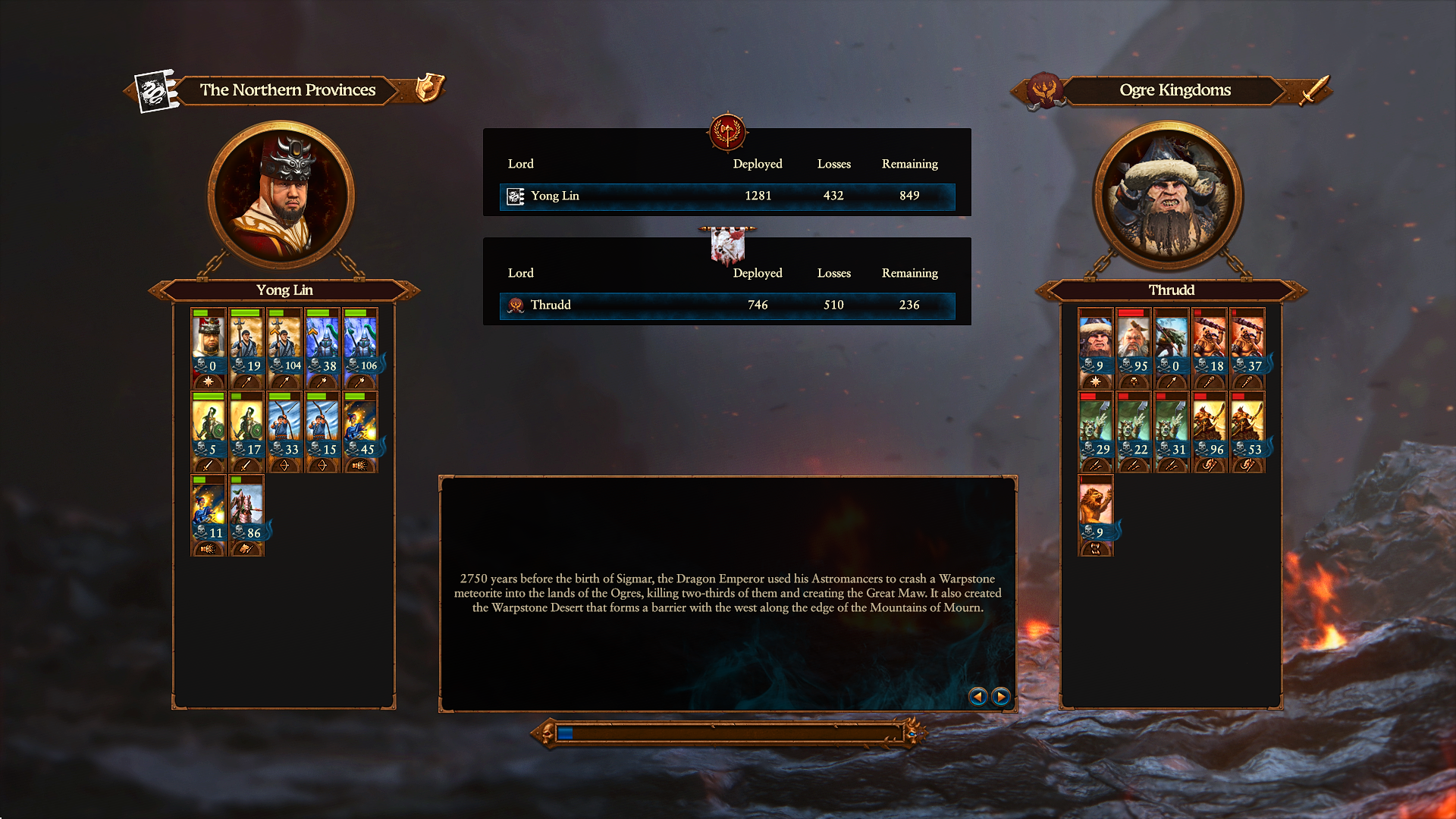 Defeating Archaon's invasion in game 1 as a gorilla warfare Grimgor was a lot of fun. Also because by that point i only every fought dwarves and savage orcs for like 80 turns so it was a welcomed change